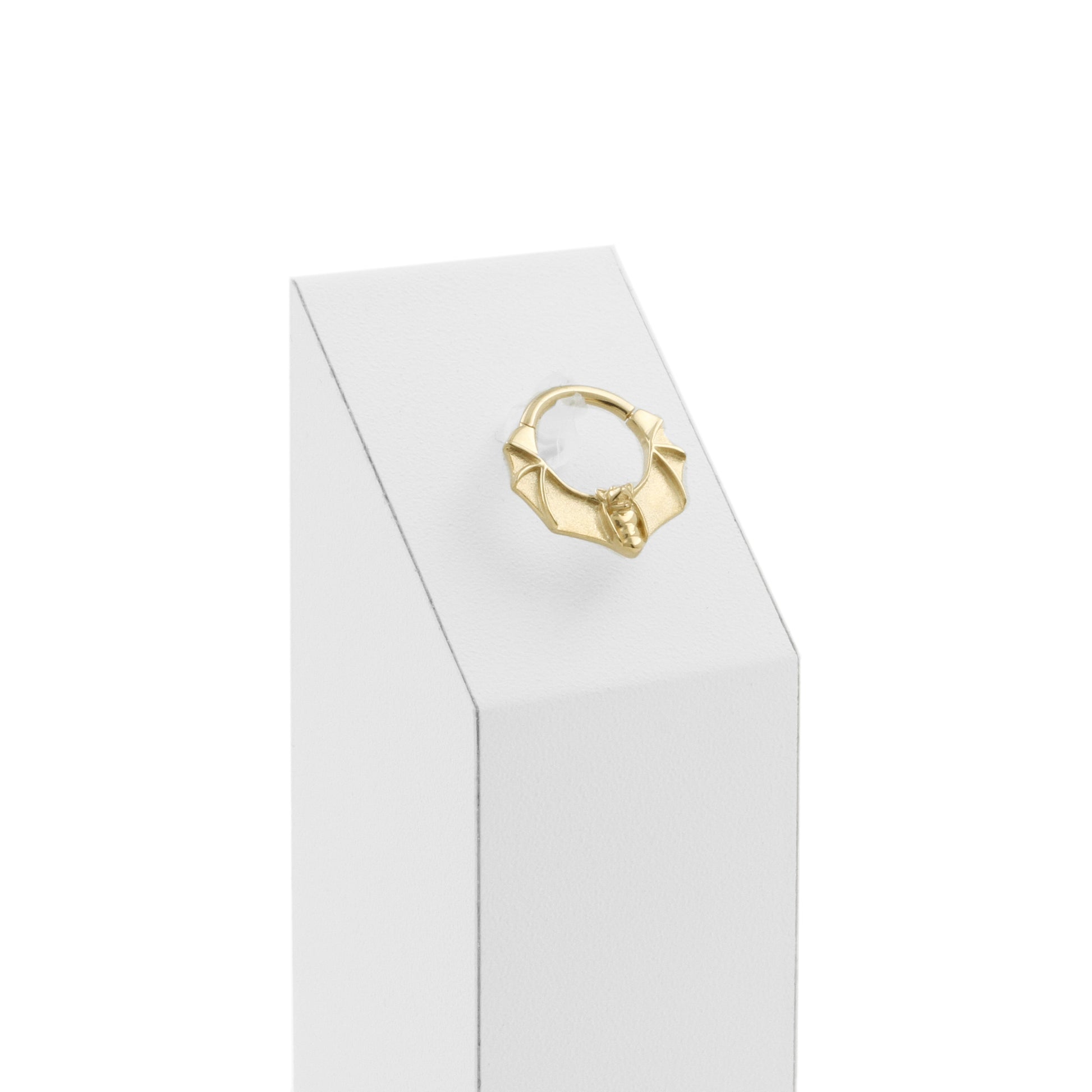 Treat yourself to comfortable, classy jewelry with a unique look! Beautiful click ring made of 14 karat gold with gorgeous design. This jewerly ring is suitable as earring, helix piercing, tragus piercing or any other piercing you can think of. Our collection Little Gem jewelry is perfect for upgrading all kinds of piercings, especially your ear party. You can use our matching threadless piercing jewelry to create the most beautiful curated ears.