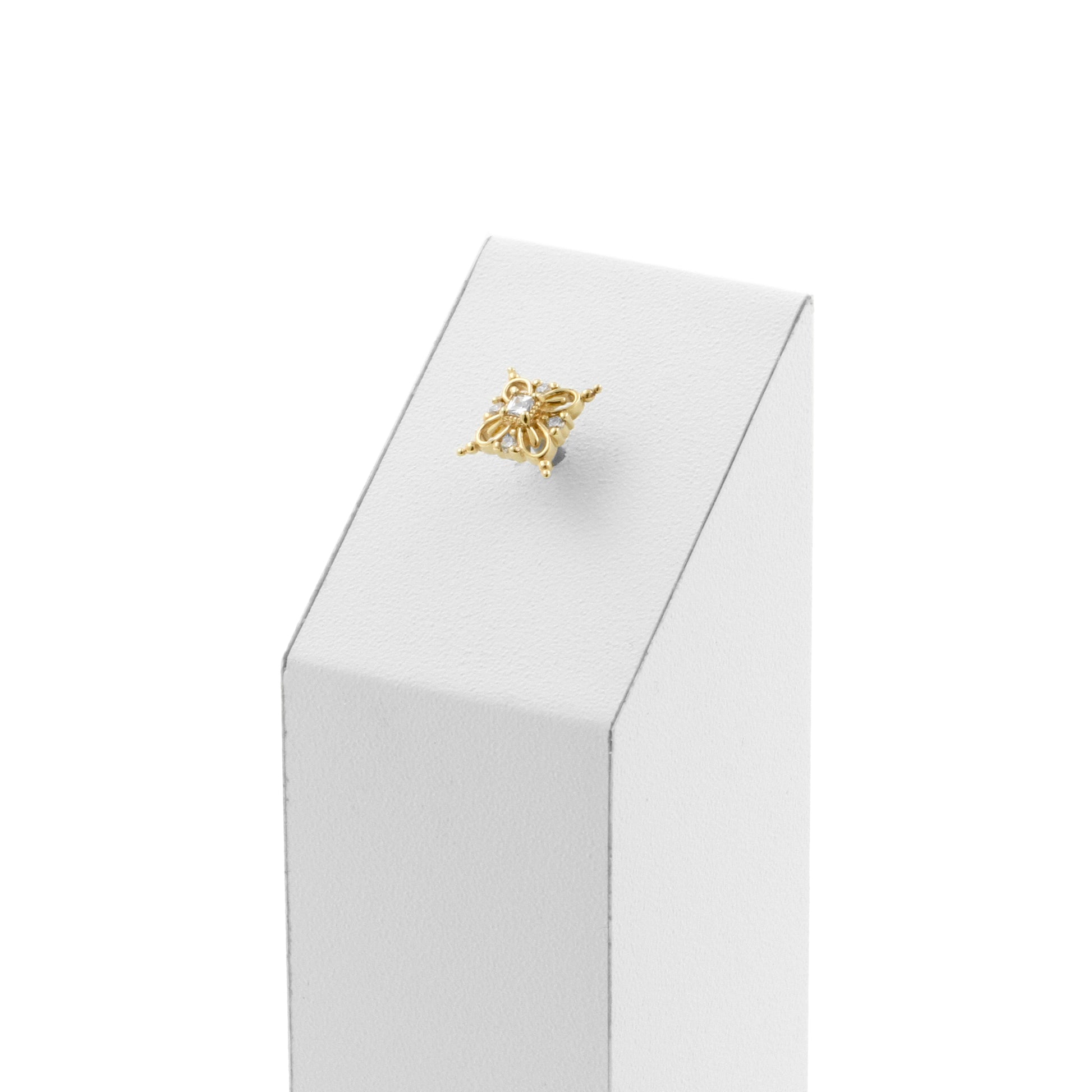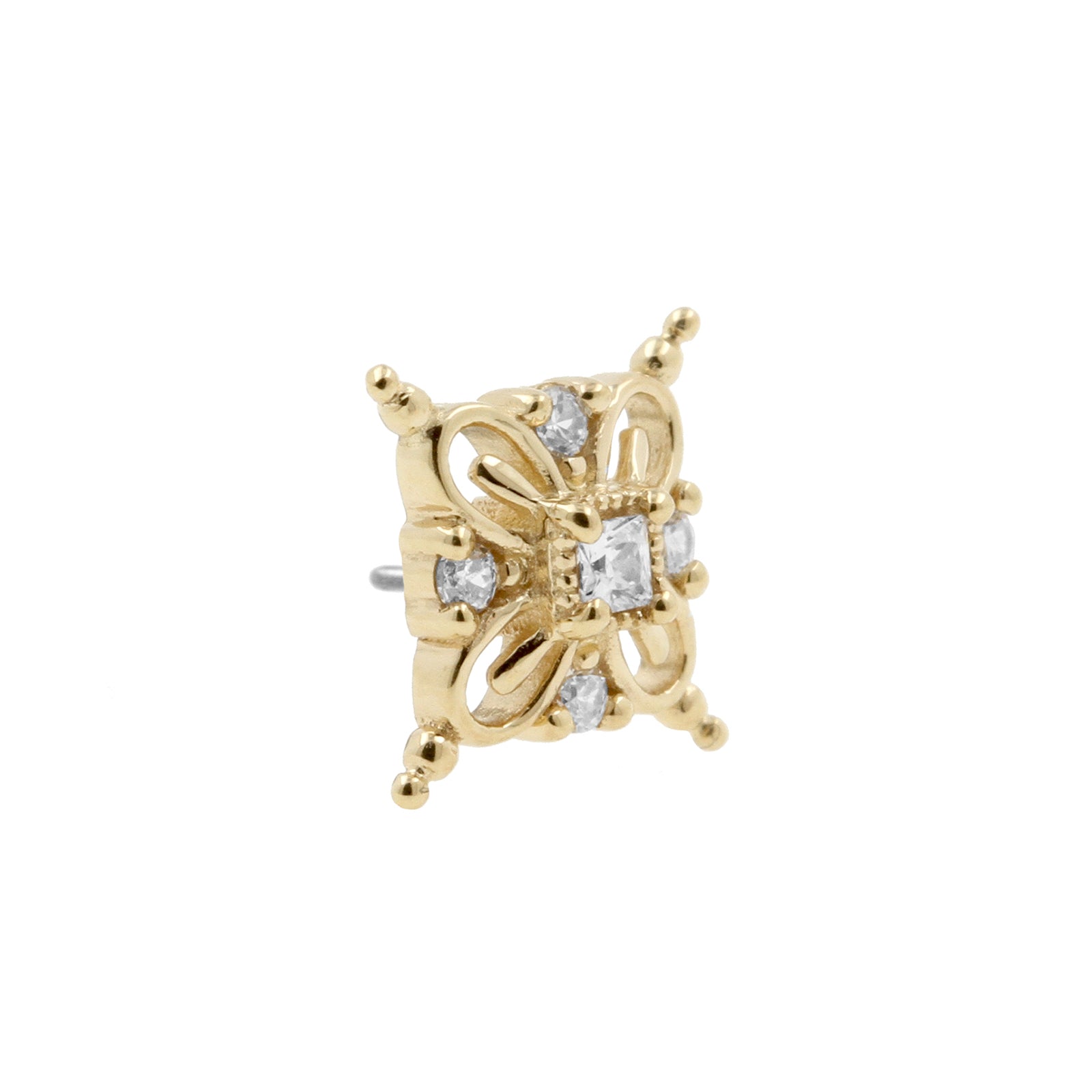 14 Karat Gold Lace Ornament instantly adds a stylish touch to your piercing. This Threadless Top is made of 14 Karat Gold. The threadless system allows you to easily combine this top with all our bars, which we call Threadless Base, for a perfect fit and ultimate comfort.