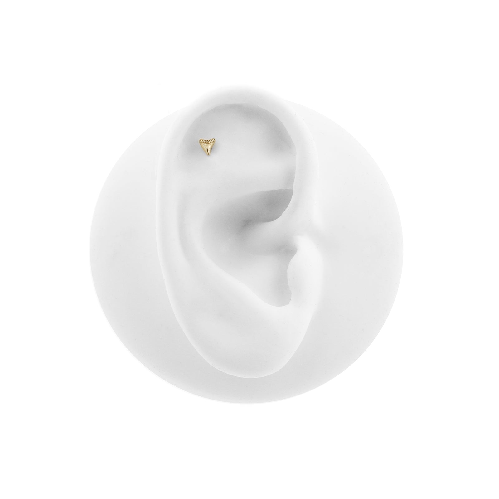14 Karat Gold Shark Tooth instantly adds a stylish touch to your piercing. This Threadless Top is made of 14 Karat Gold. The threadless system allows you to easily combine this top with all our bars, which we call Threadless Base, for a perfect fit and ultimate comfort.