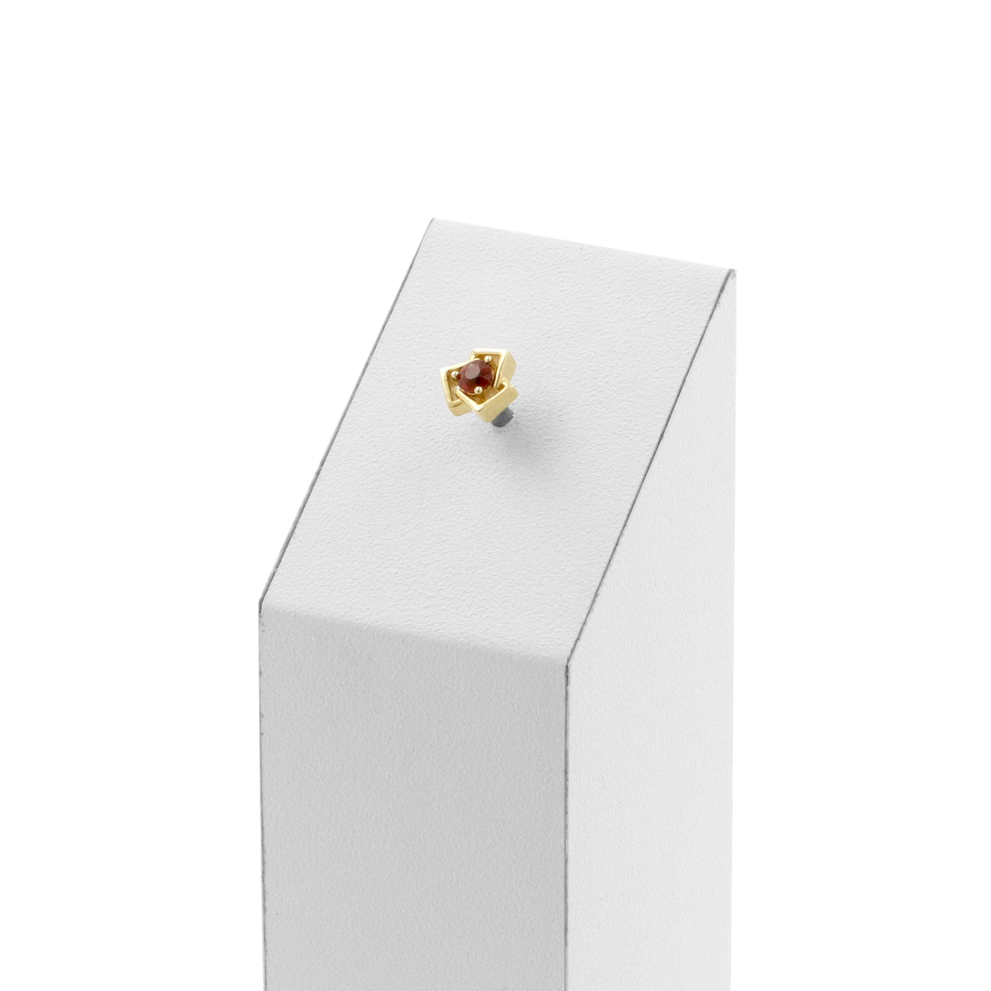 14 Karat Gold Squares With Ruby instantly adds a stylish touch to your piercing. This Threadless Top is made of 14 Karat Gold. The threadless system allows you to easily combine this top with all our bars, which we call Threadless Base, for a perfect fit and ultimate comfort.