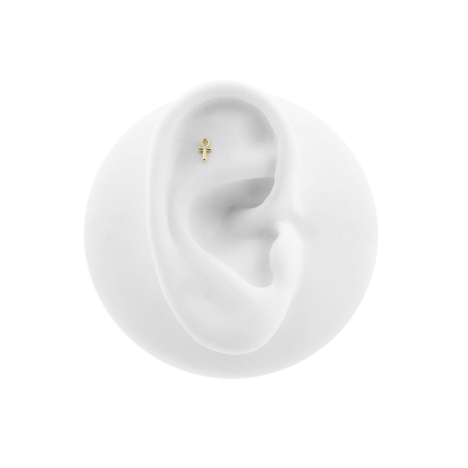 18 Karat Gold Ankh instantly adds a stylish touch to your piercing. This Threadless Top is made of 18 Karat Gold. The threadless system allows you to easily combine this top with all our bars, which we call Threadless Base, for a perfect fit and ultimate comfort.