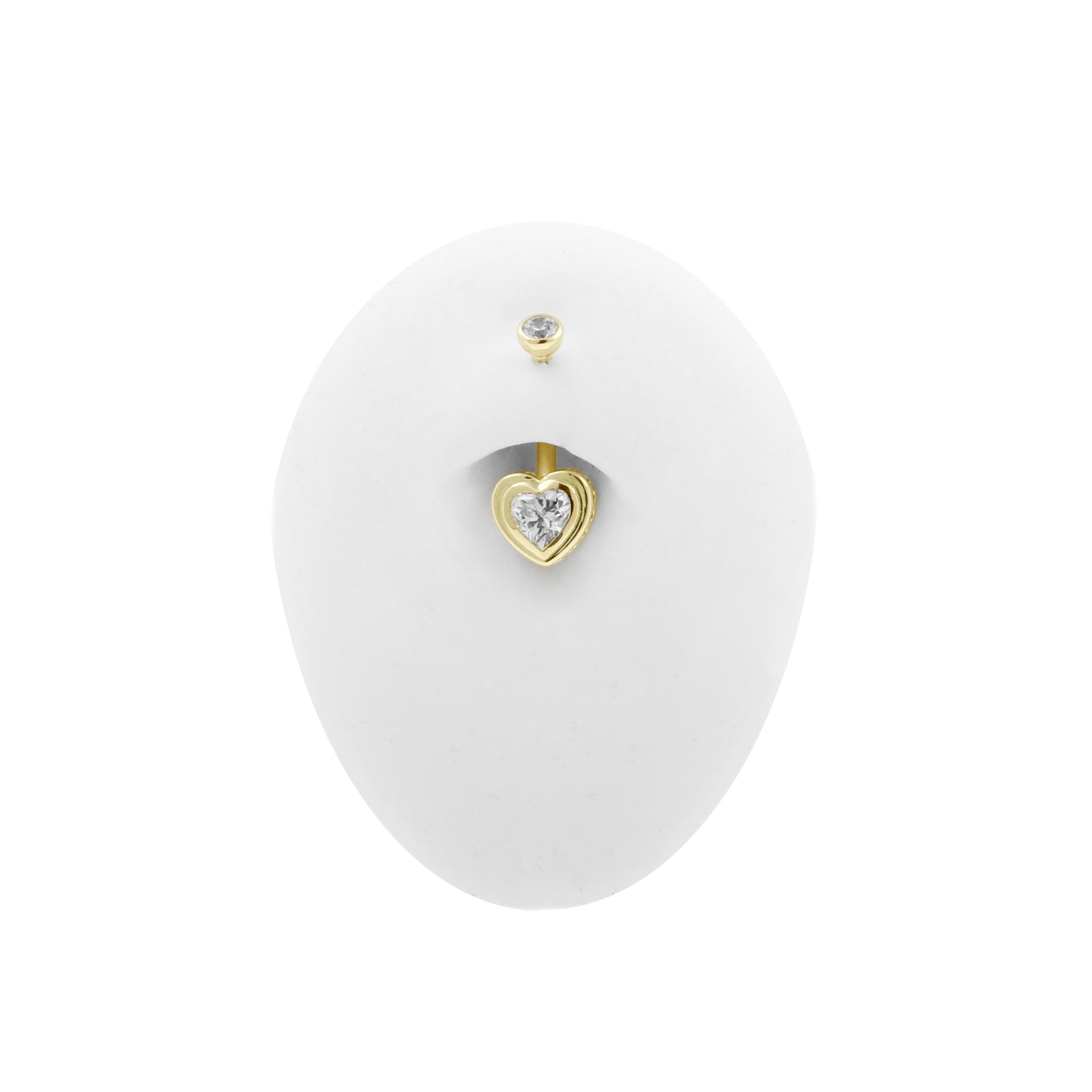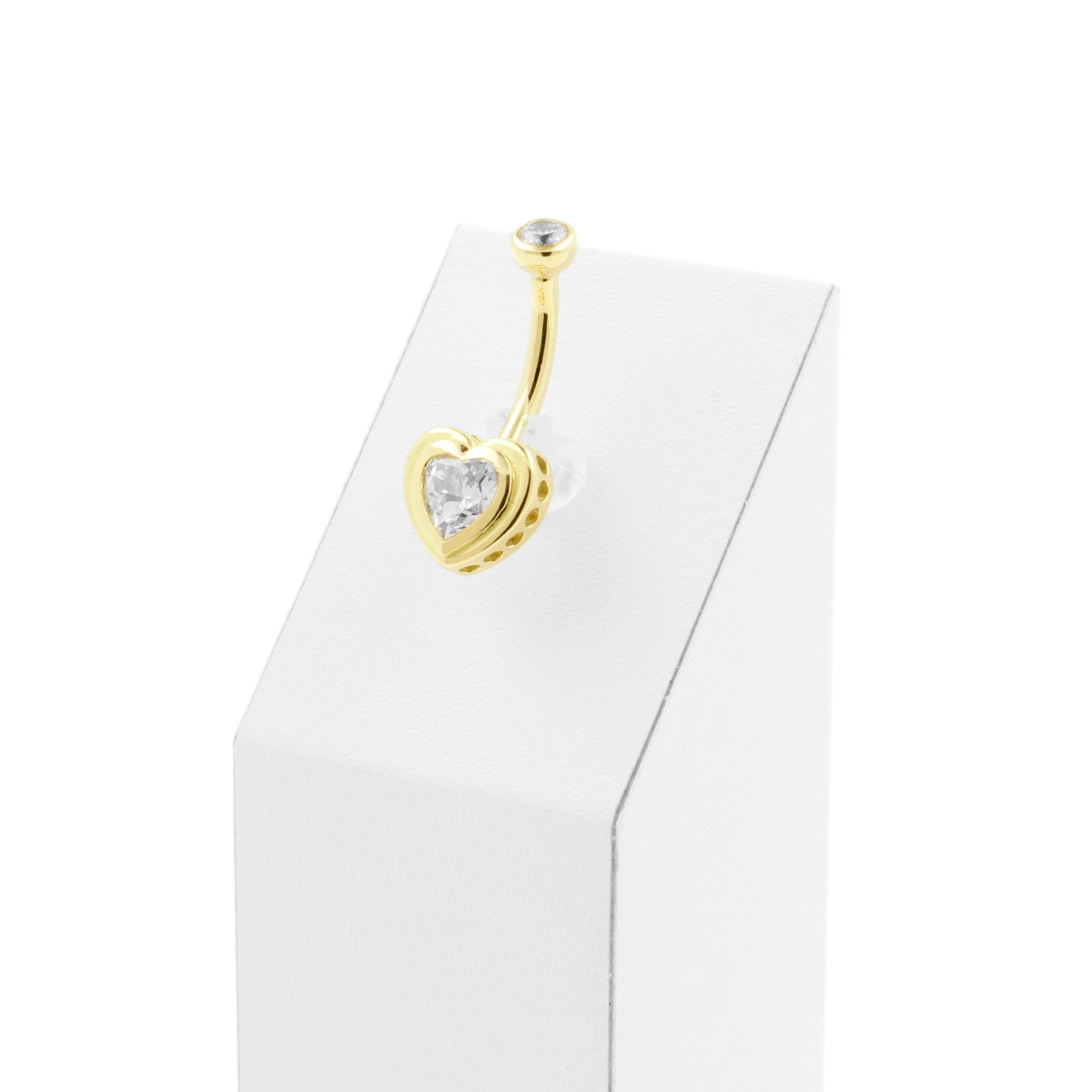 18 Karat Gold Belly Bar with Heart Shaped Premium Zirconia