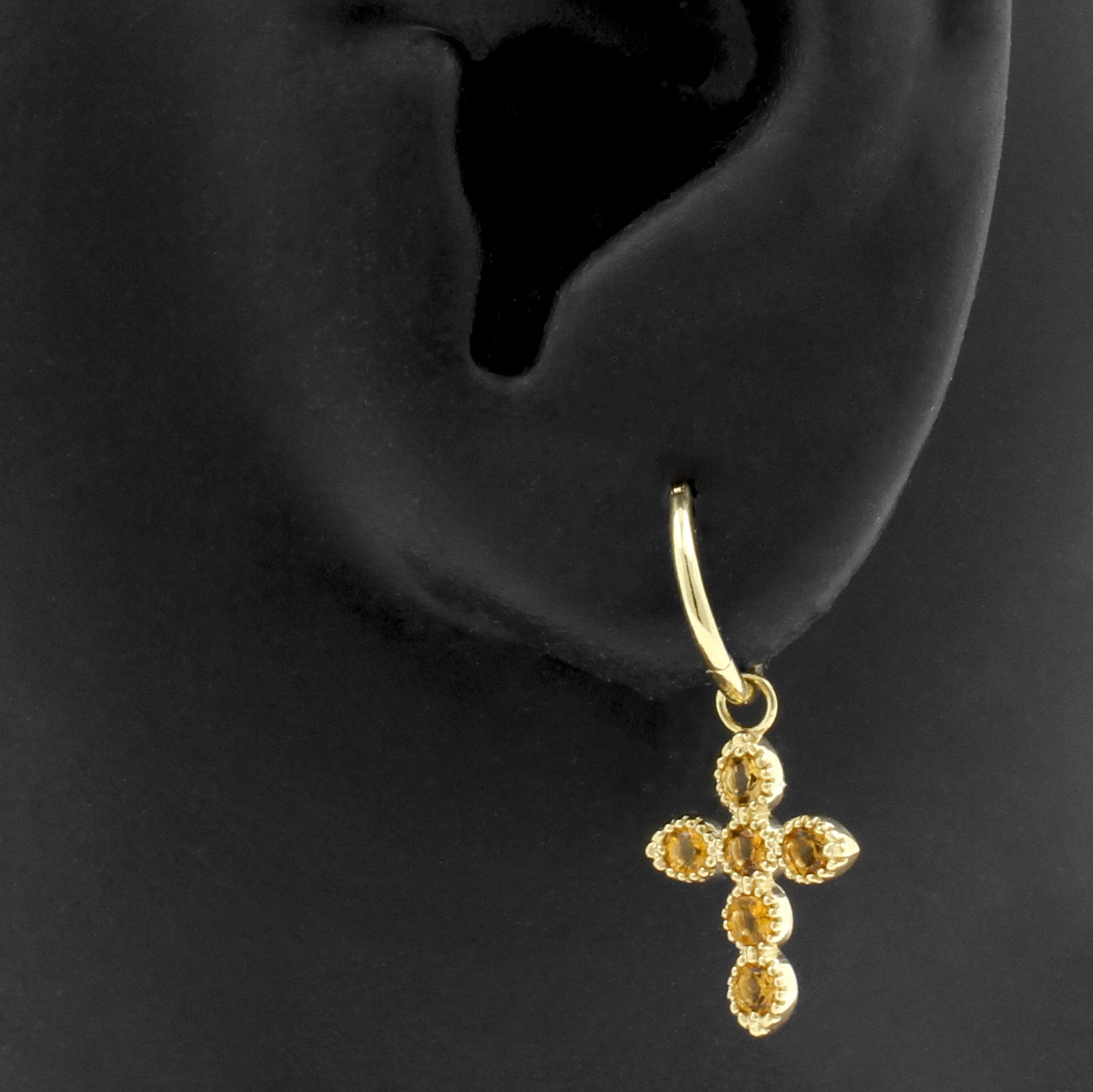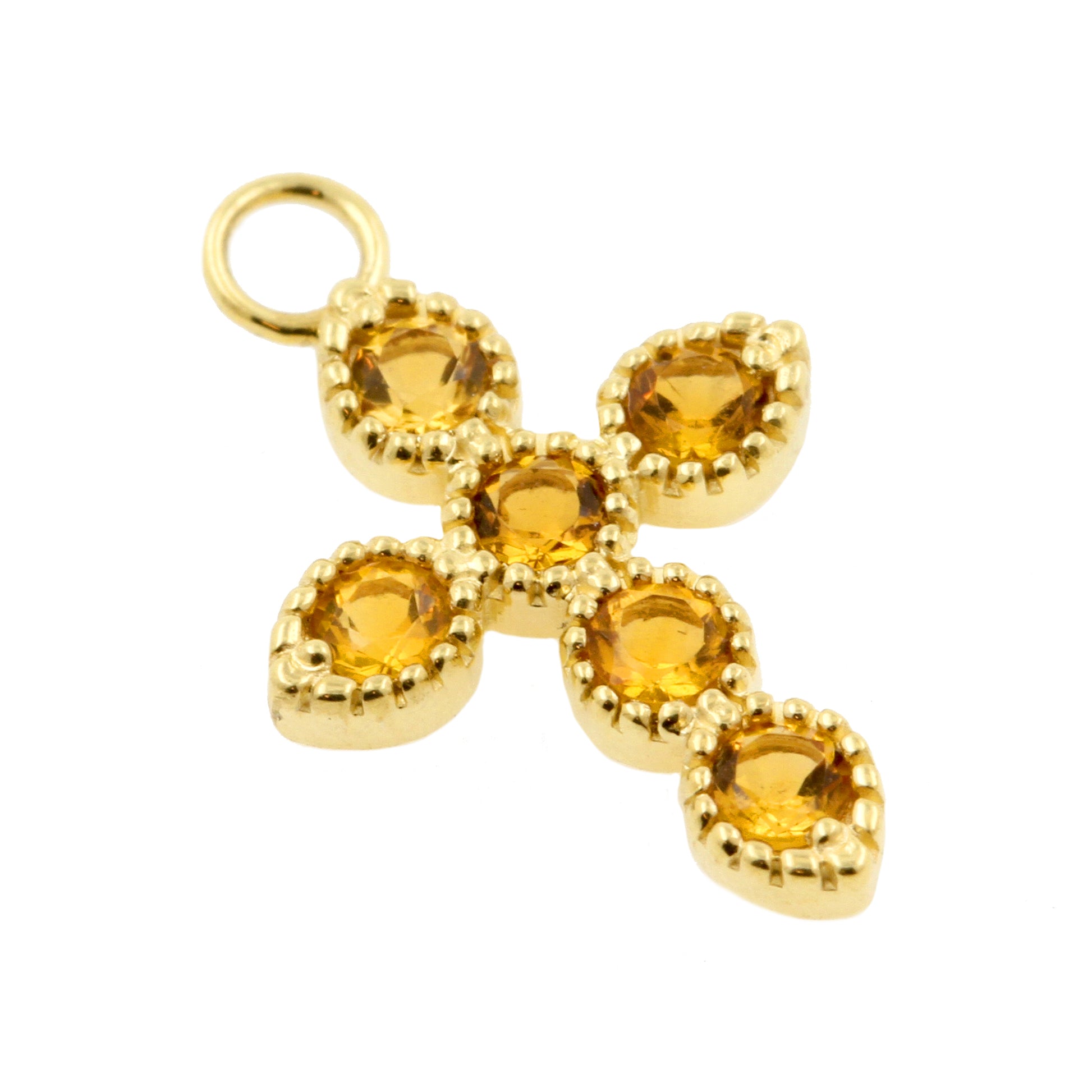 18 Karat Gold Click Ring Charm - Cross Citrine
