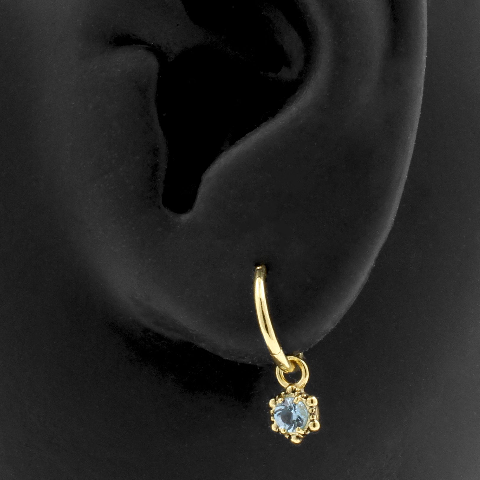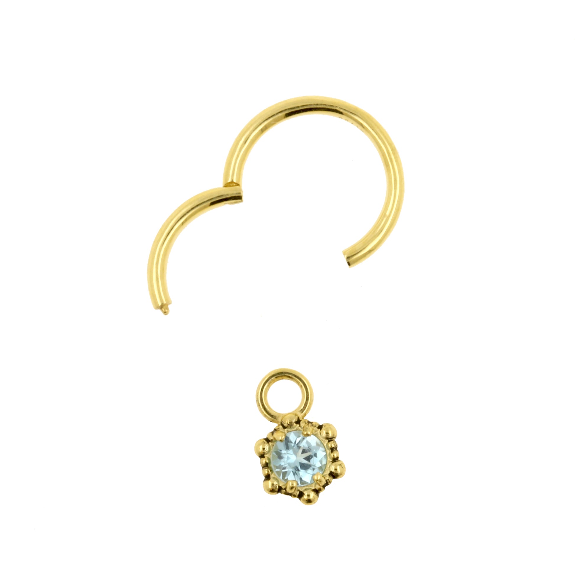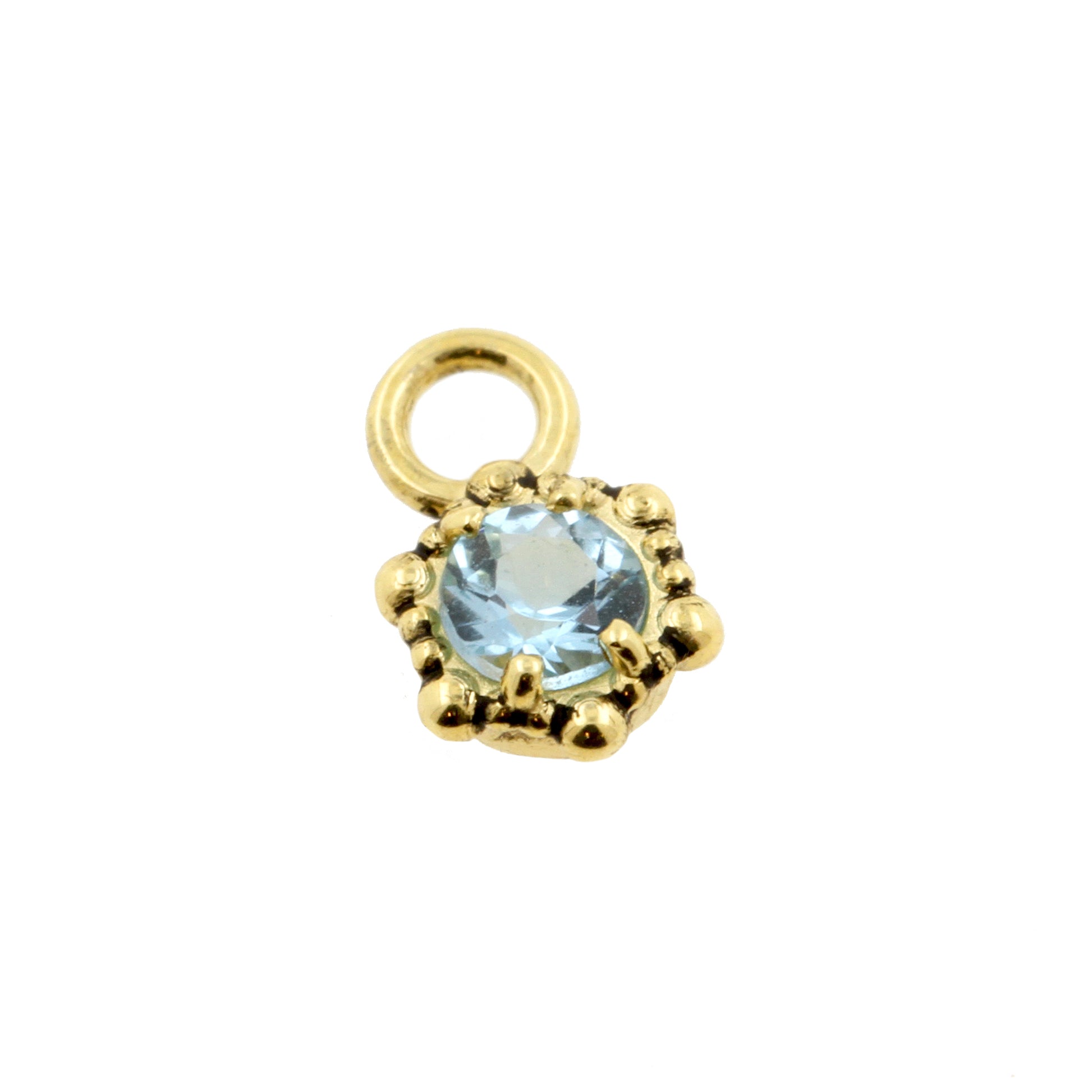 18 Karat Gold Click Ring Charm - Vintage Dots Blue Topaz