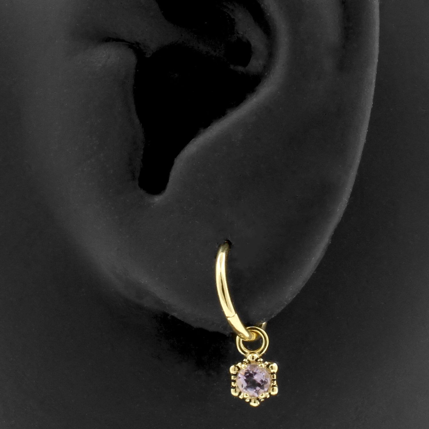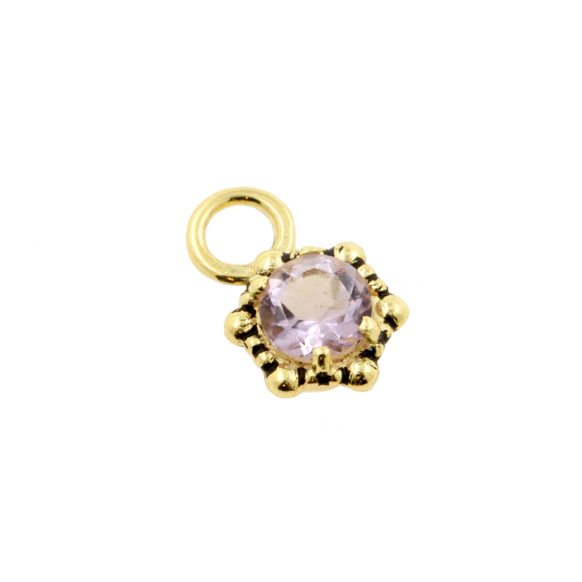 18 Karat Gold Click Ring Charm - Vintage Dots Pink Amethyst