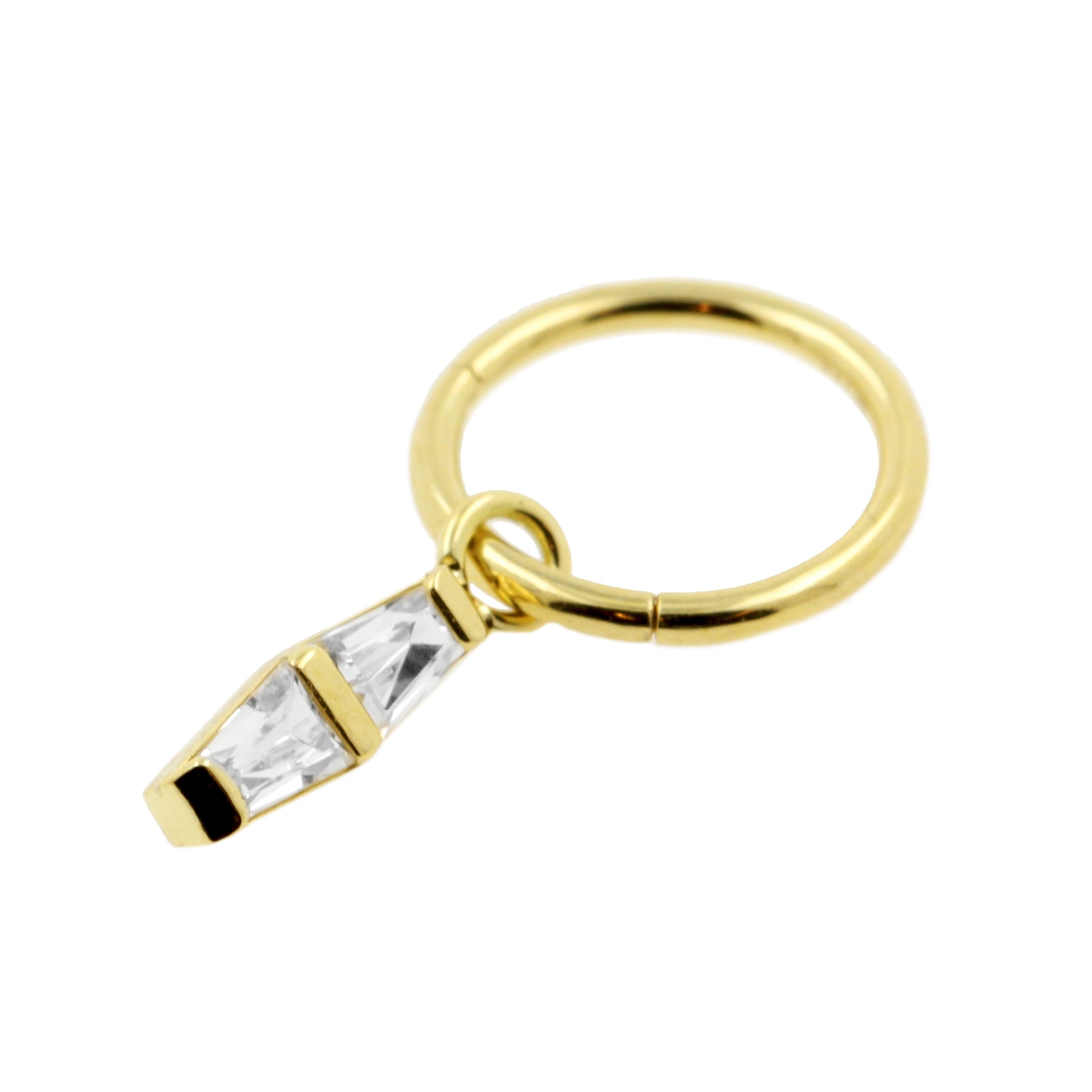 18 Karat Gold Click Ring Charm - Zirconia Double Trapezoid