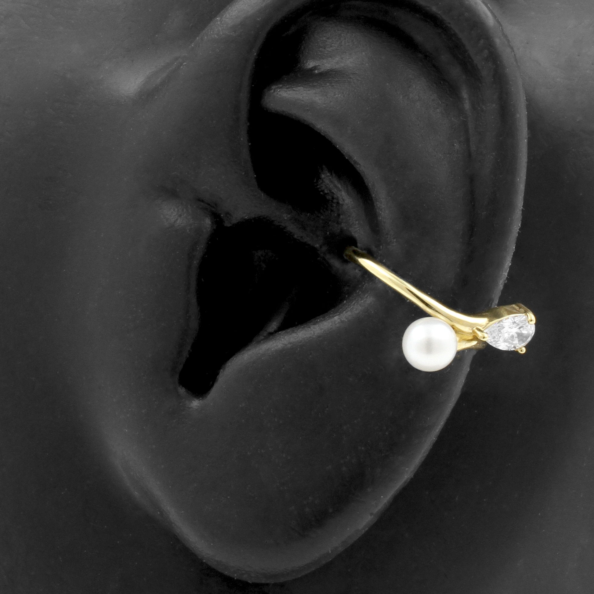18 Karat Gold Conch Clicker - Zirconia And Pearl