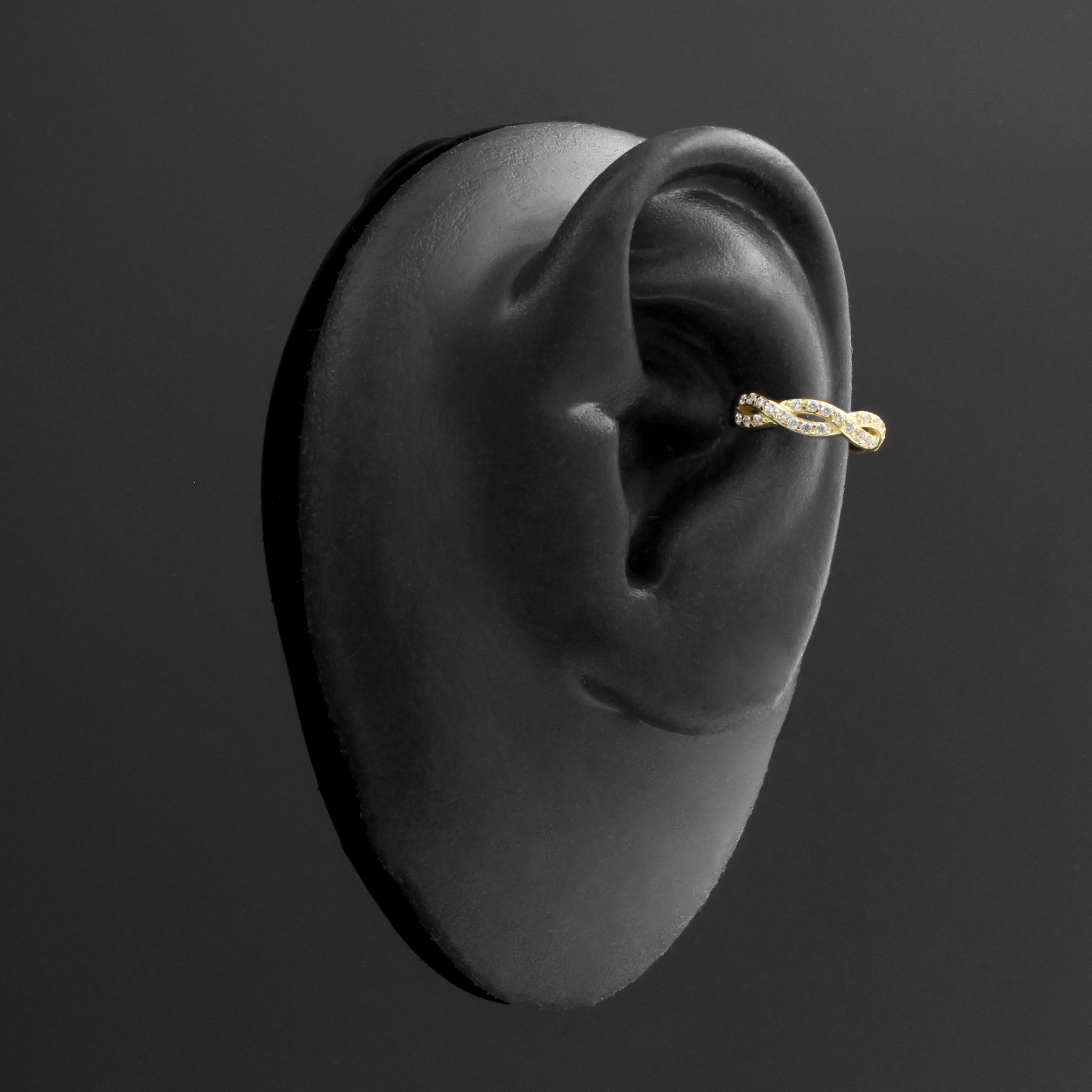 18 Karat Gold Conch Clicker - Zirconia Braid