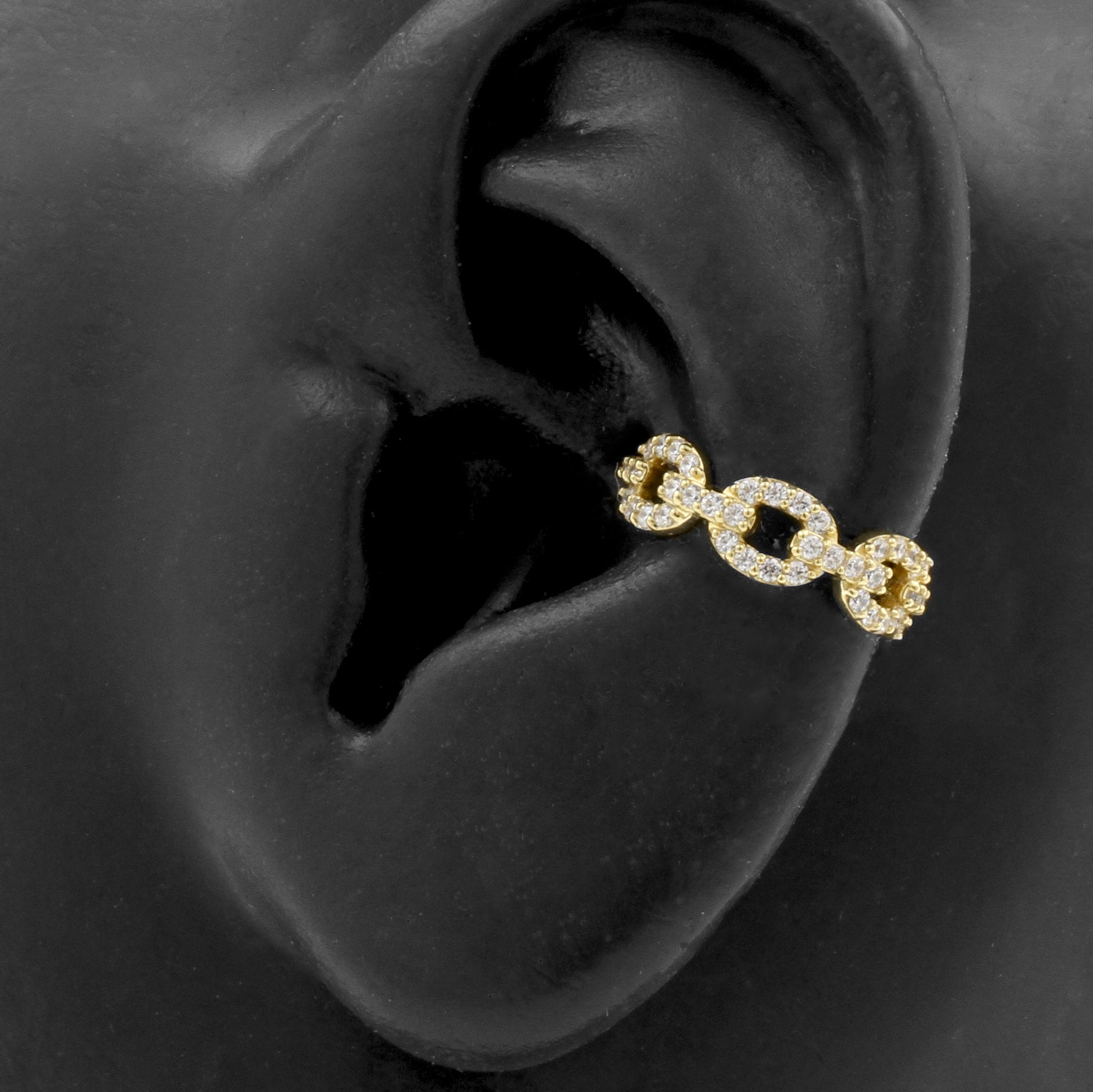 18 Karat Gold Conch Clicker - Zirconia Chain