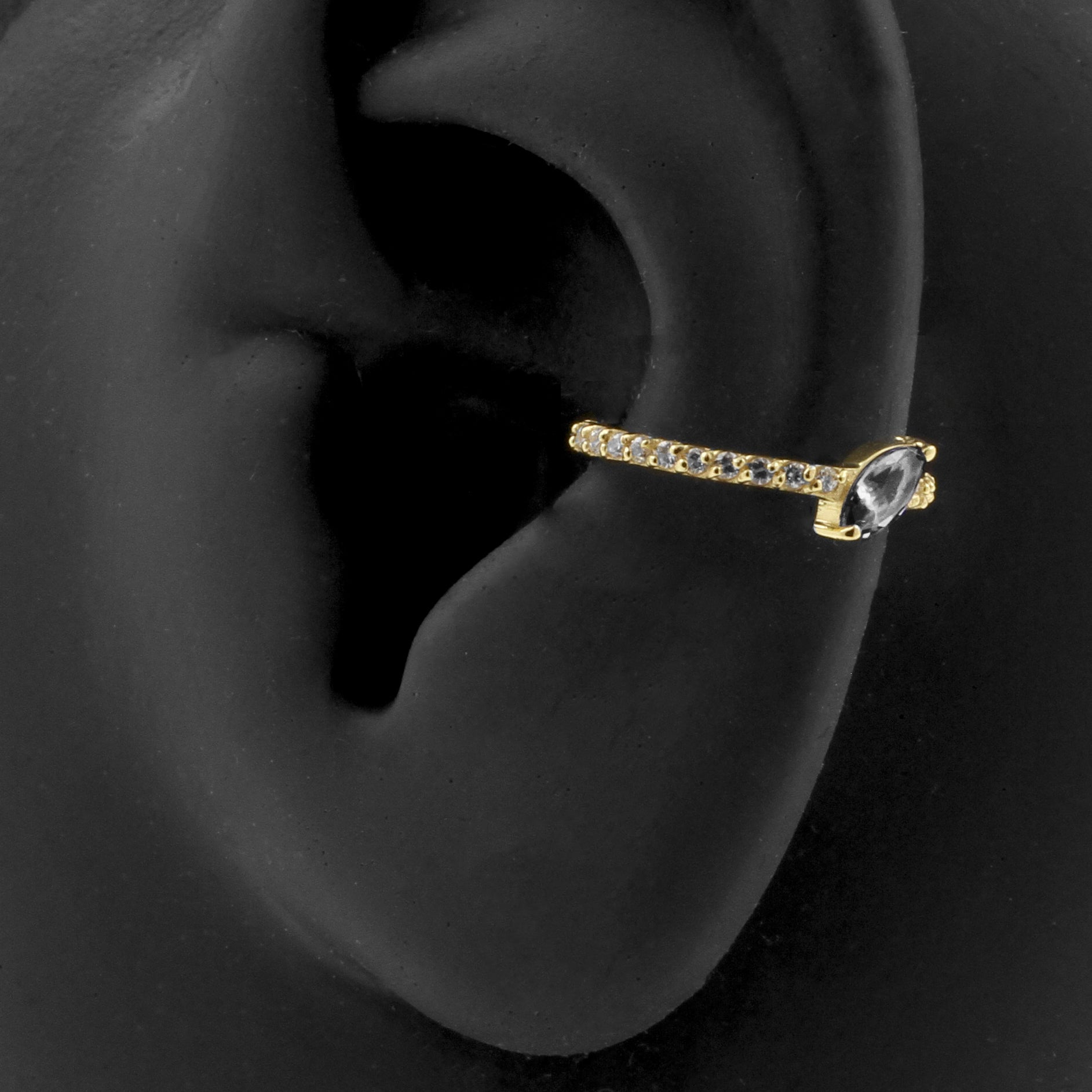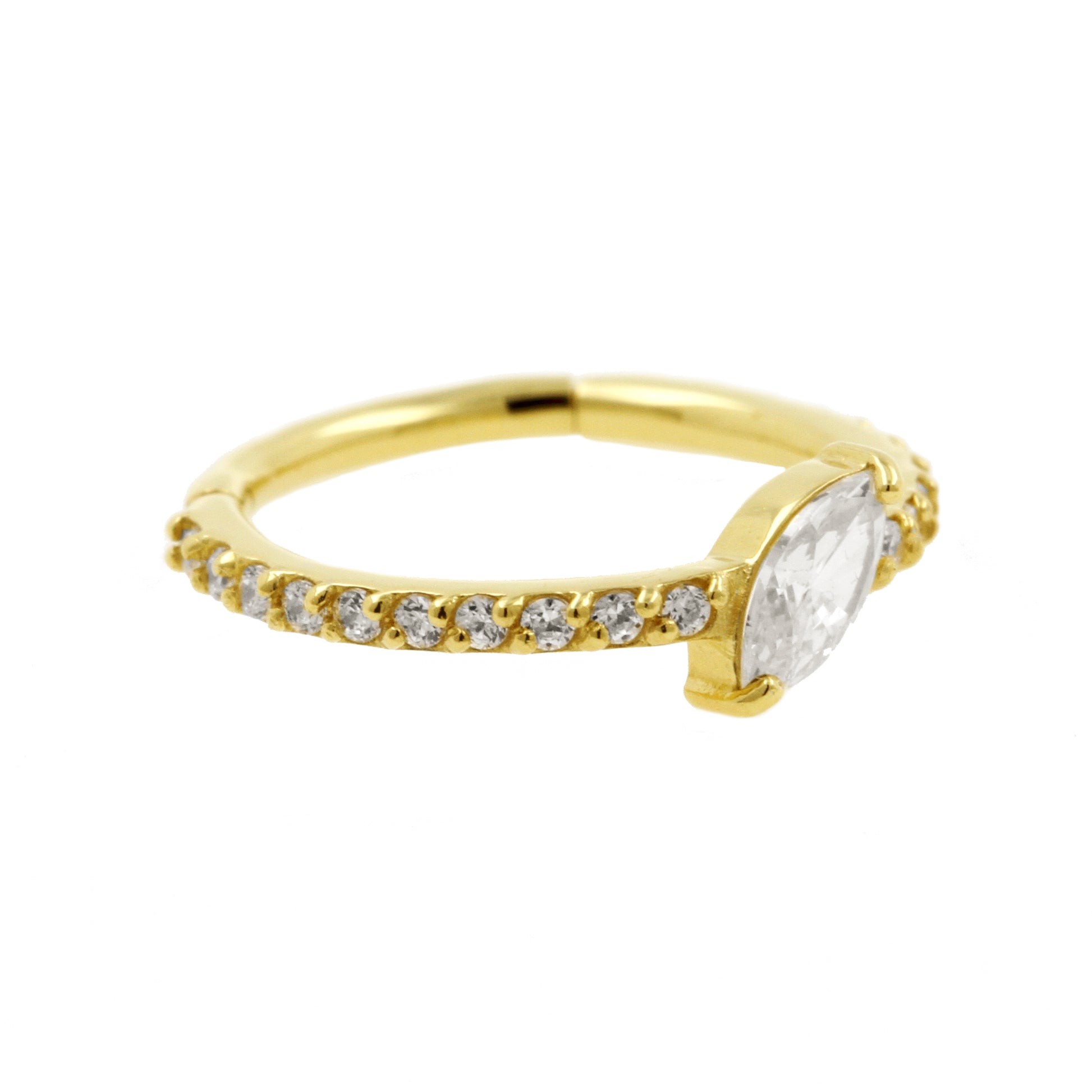 18 Karat Gold Conch Clicker - Zirconia Marquise And Gems