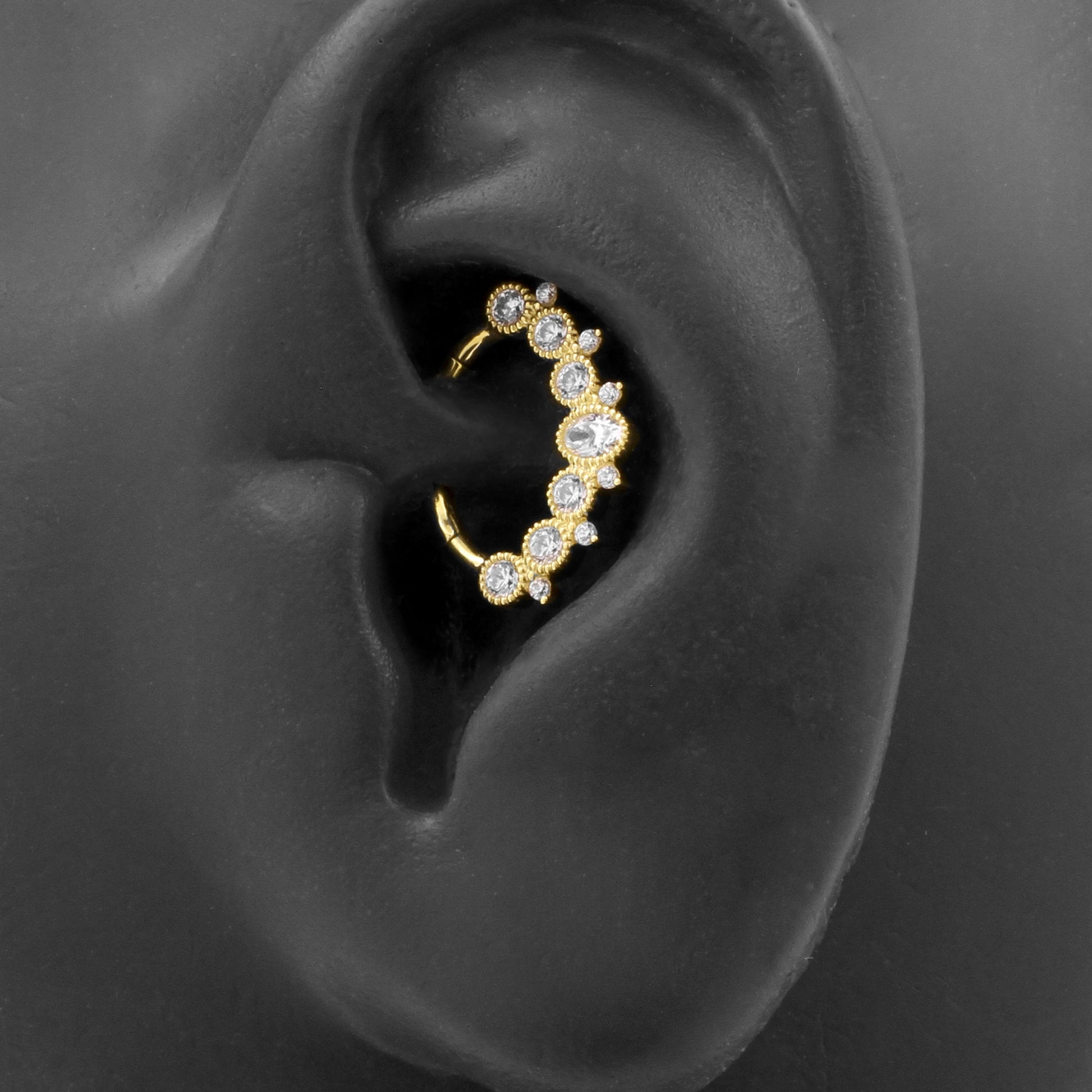 18 Karat Gold Daith Clicker - Dotted Zirconia Gold