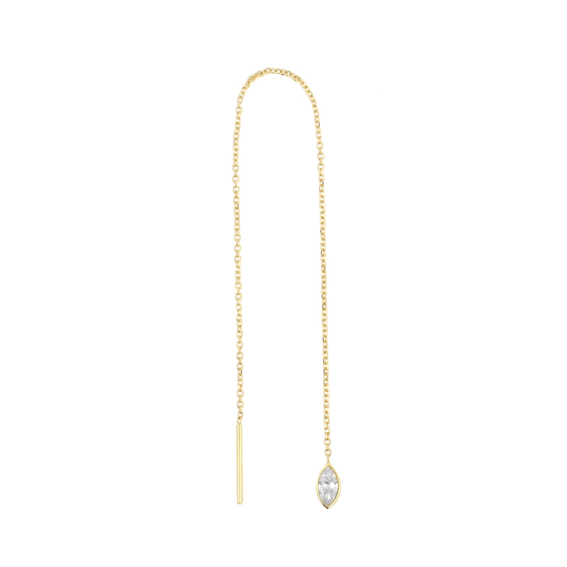 18 Karat Gold Ear Threader - Zirconia Marquise