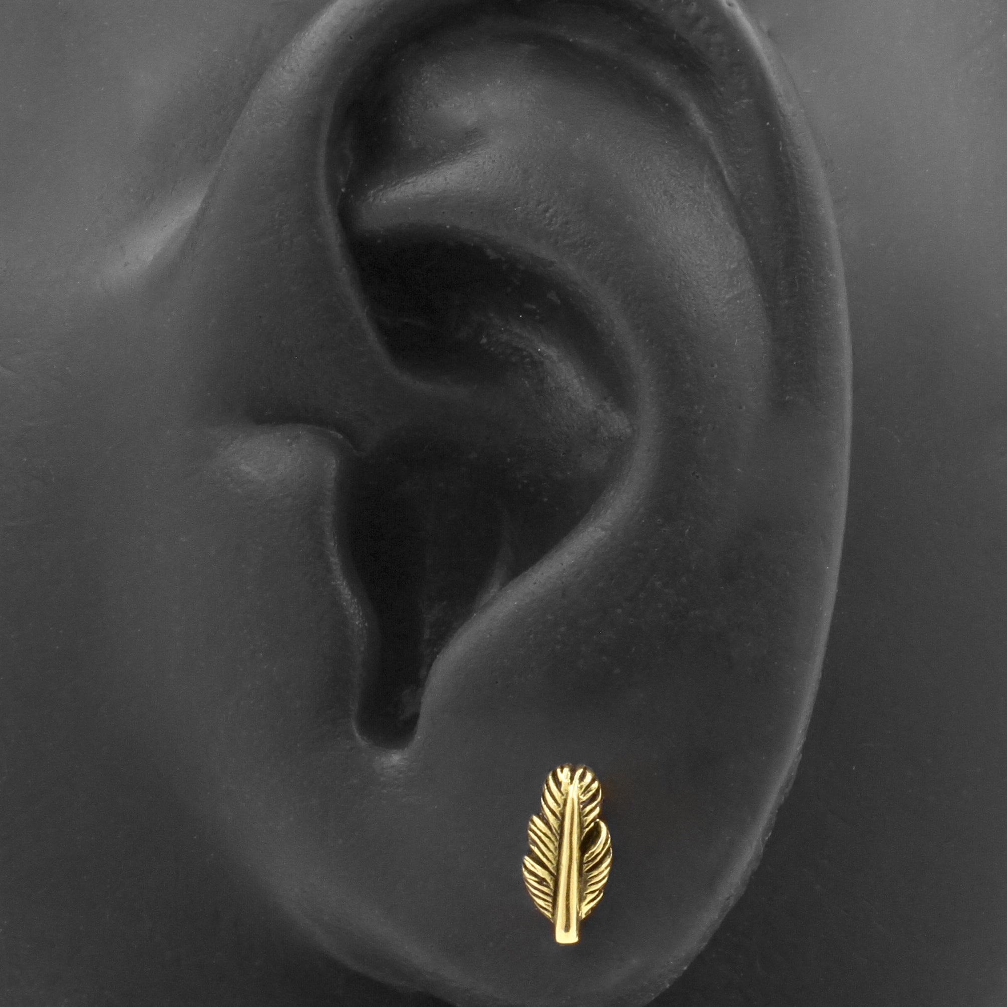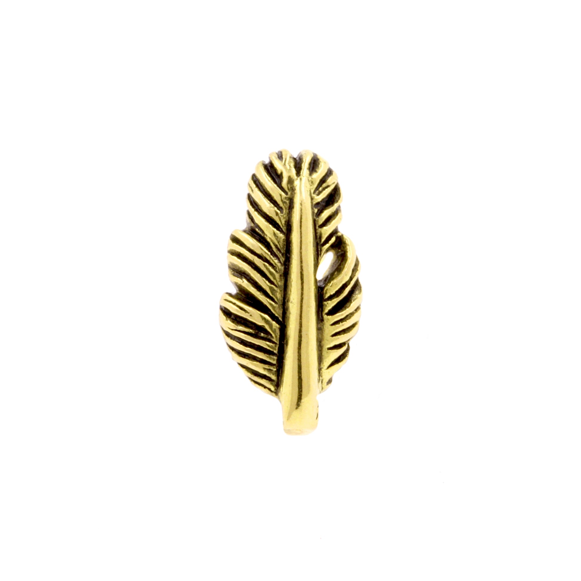 18 Karat Gold Feather instantly adds a stylish touch to your piercing. This Threadless Top is made of 18 Karat Gold. The threadless system allows you to easily combine this top with all our bars, which we call Threadless Base, for a perfect fit and ultimate comfort.