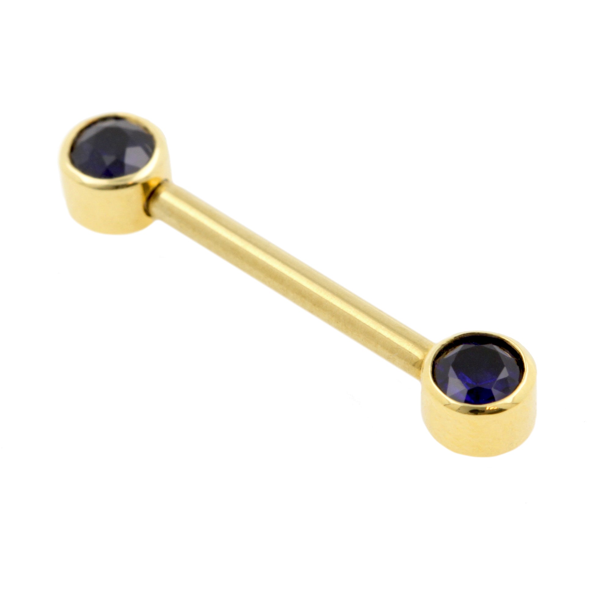 18 Karat Gold Nipple Barbell With Diffusion Sapphire Discs