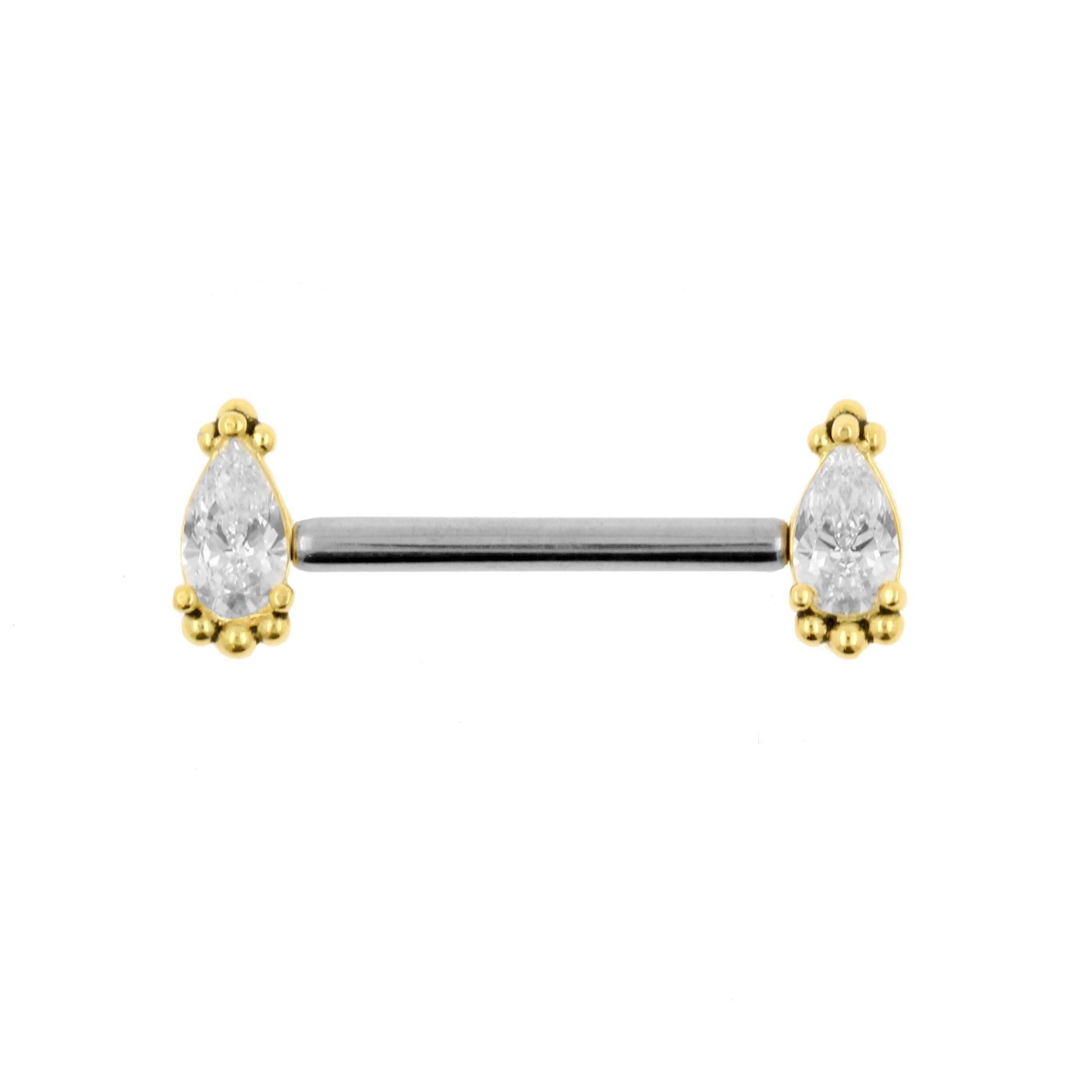 18 Karat Gold Nipple Barbell With Vintage Marquise