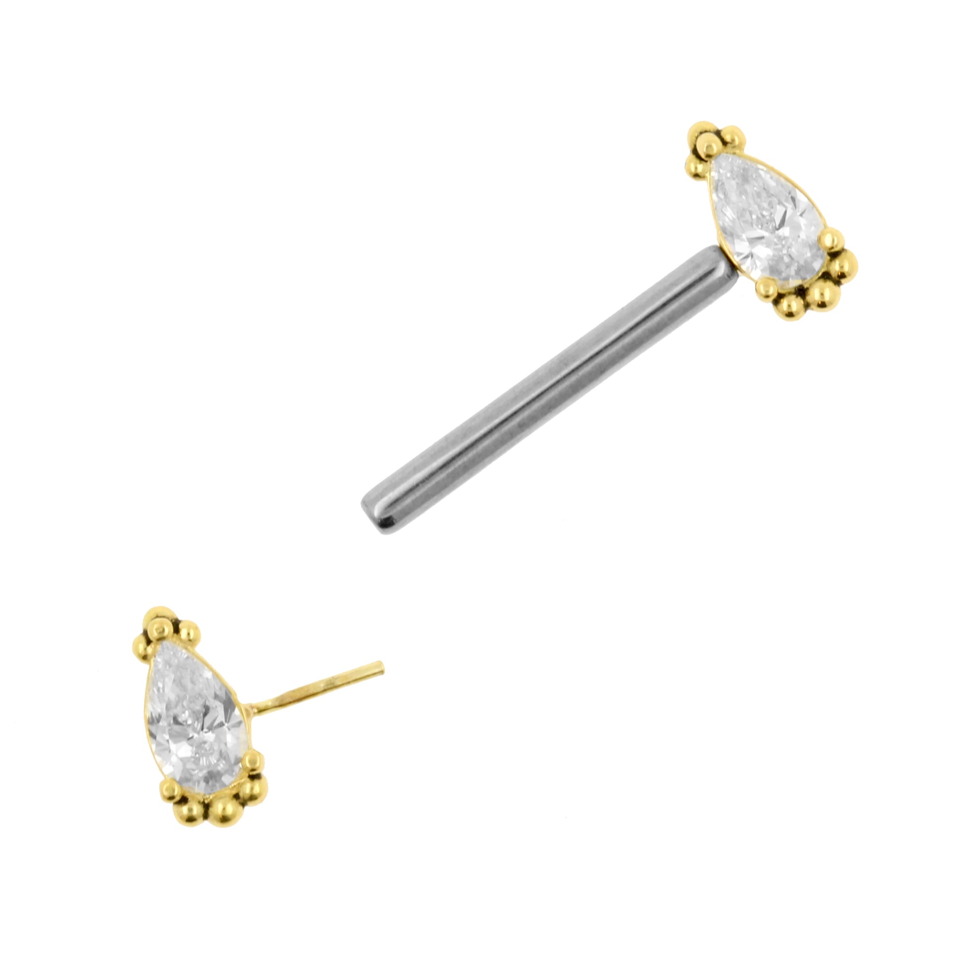 Our threadless accessories are slightly pre-bent. Please check if this meets your expectations upon first use. If not, insert the pin about halfway into the stem. Using your hands only, slightly bend the pin down. Push the pin completely into place to secure your accessory. The slightly bended pin ensures that the piercing jewelry will stay into place. Pull at both ends to remove the jewelry. Check the illustrated instructions added to the product photos.