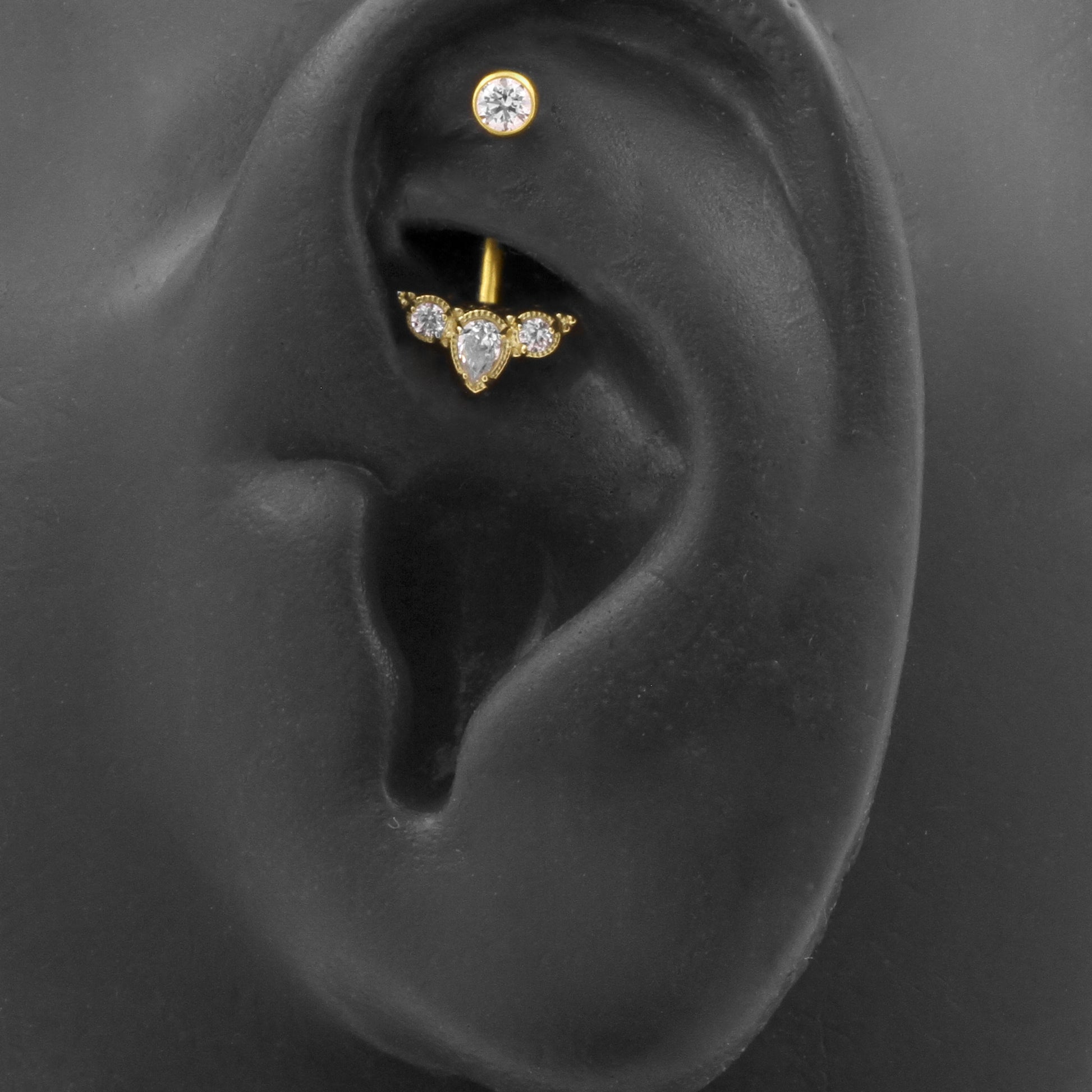 Our threadless accessories are slightly pre-bent. Please check if this meets your expectations upon first use. If not, insert the pin about halfway into the stem. Using your hands only, slightly bend the pin down. Push the pin completely into place to secure your accessory. The slightly bended pin ensures that the piercing jewelry will stay into place. Pull at both ends to remove the jewelry. Check the illustrated instructions added to the product photos.