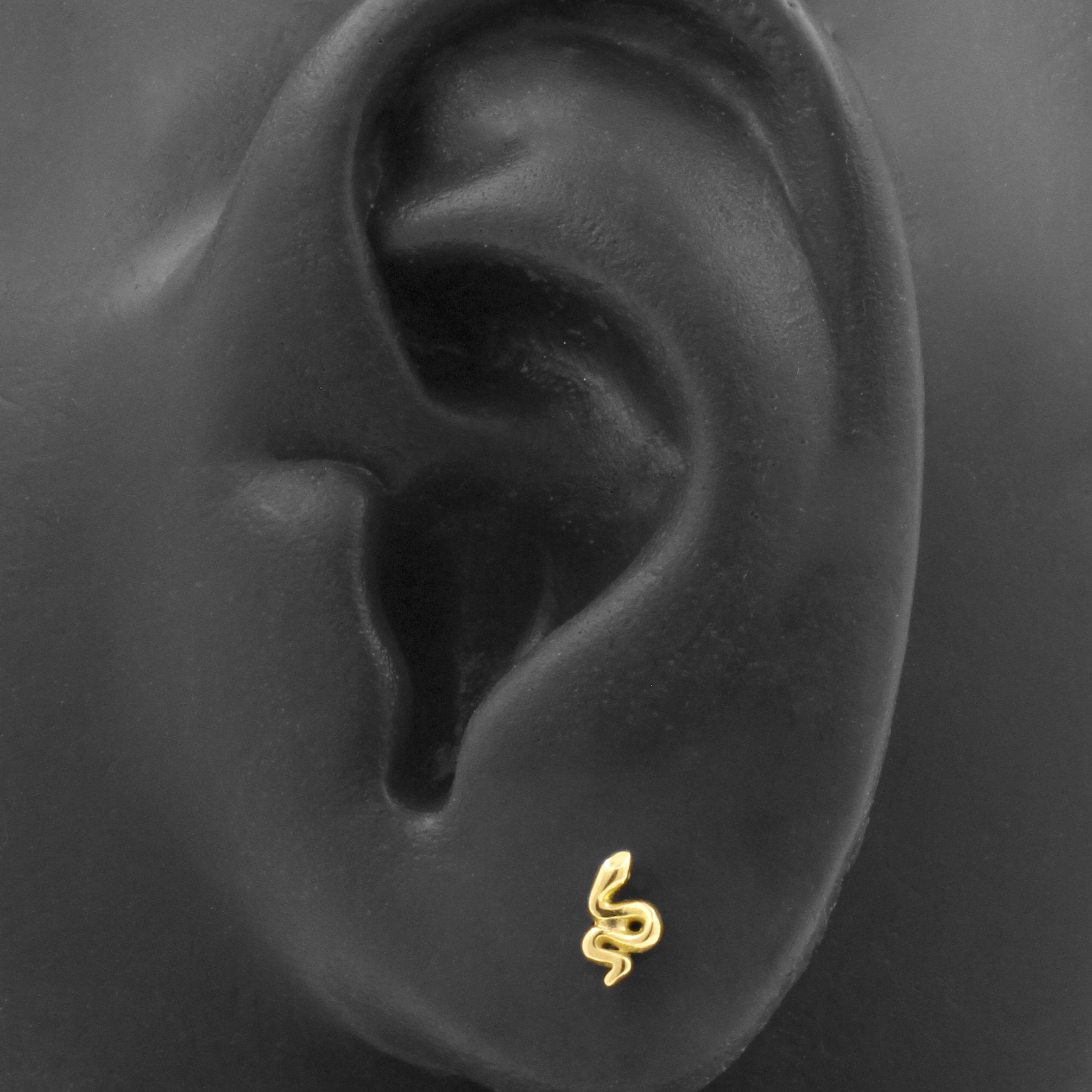 18 Karat Gold Snake instantly adds a stylish touch to your piercing. This Threadless Top is made of 18 Karat Gold. The threadless system allows you to easily combine this top with all our bars, which we call Threadless Base, for a perfect fit and ultimate comfort.