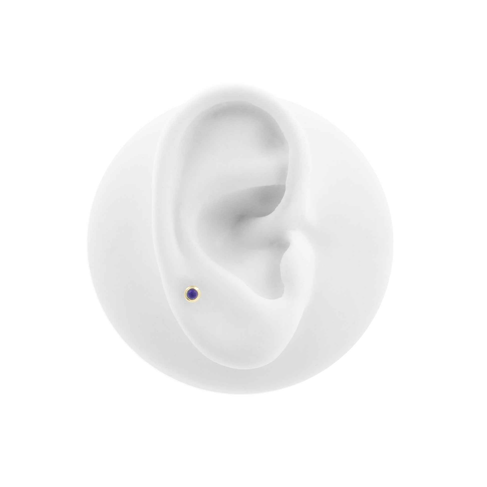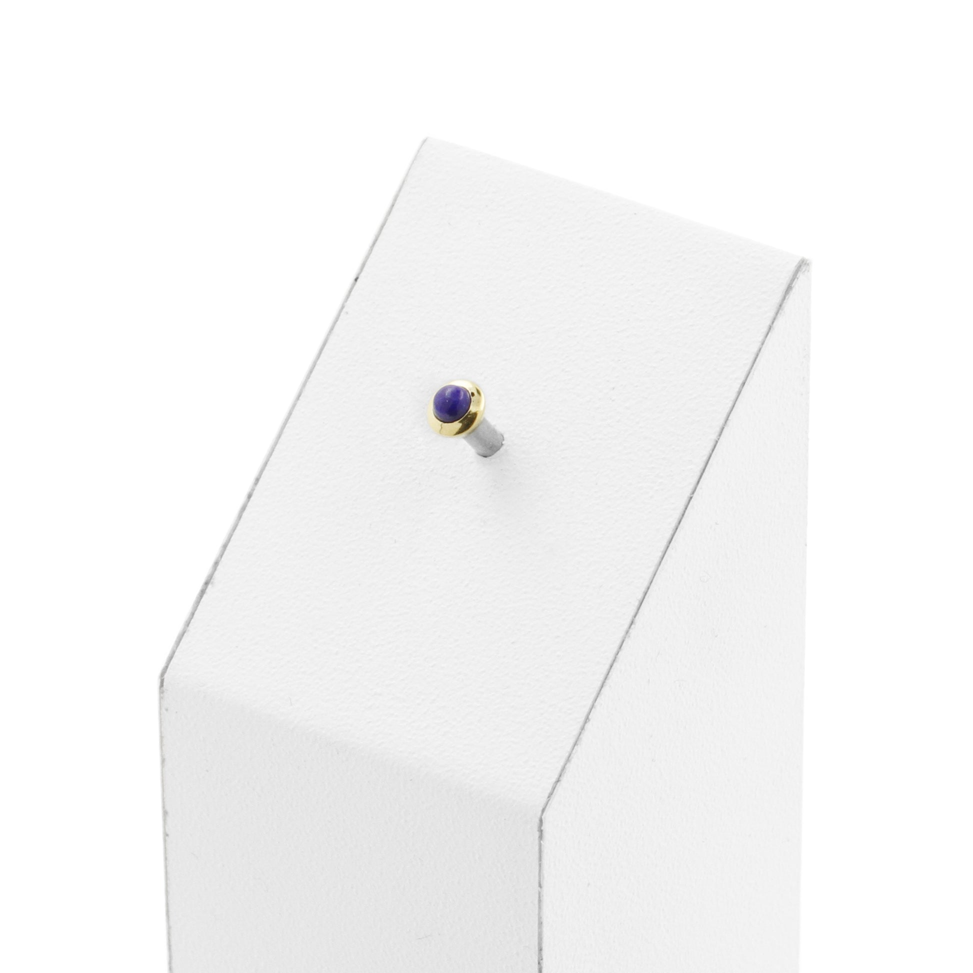 18 Karat Gold Top - Lapis Lazuli instantly adds a stylish touch to your piercing. This Threadless Top is made of 18 Karat Gold with a lapiz lazuli in Dark Blue. The threadless system allows you to easily combine this top with all our bars, which we call Threadless Base, for a perfect fit and ultimate comfort.