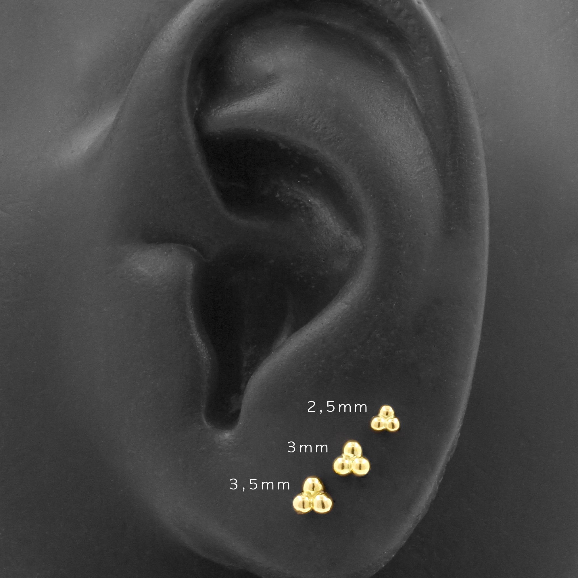 18 Karat Gold Triple Dots instantly adds a stylish touch to your piercing. This Threadless Top is made of 18 Karat Gold. The threadless system allows you to easily combine this top with all our bars, which we call Threadless Base, for a perfect fit and ultimate comfort.