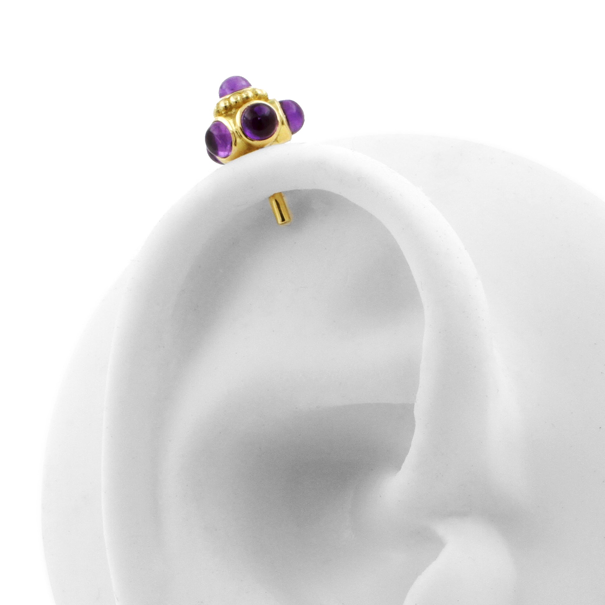 18 Karat Gold Vertical Helix Amethyst Stud