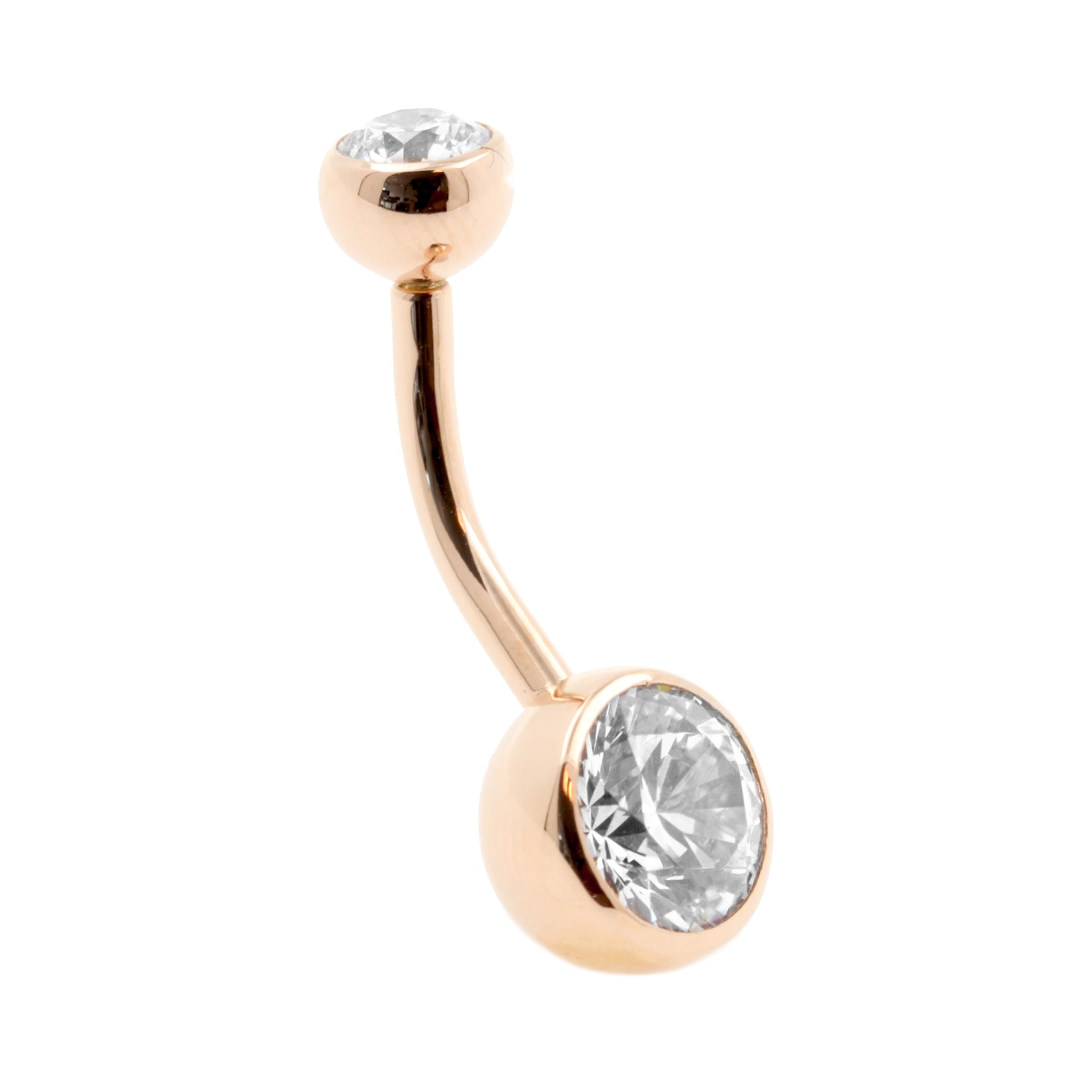18 Karat Rose Gold Belly Ring with Premium Zirconia Clear