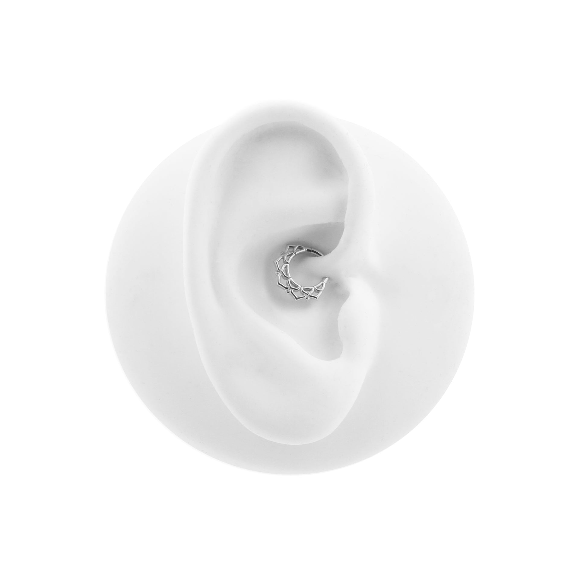 18 Karat White Gold Click Ring - Ornamental Lotus