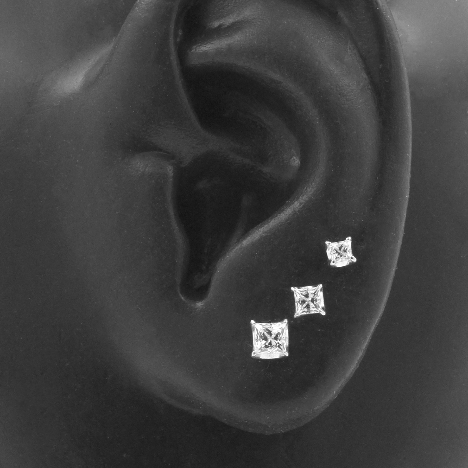 18 Karat White Gold Zirconia Square instantly adds a stylish touch to your piercing. This Threadless Top is made of 18 Karat White Gold. The threadless system allows you to easily combine this top with all our bars, which we call Threadless Base, for a perfect fit and ultimate comfort.