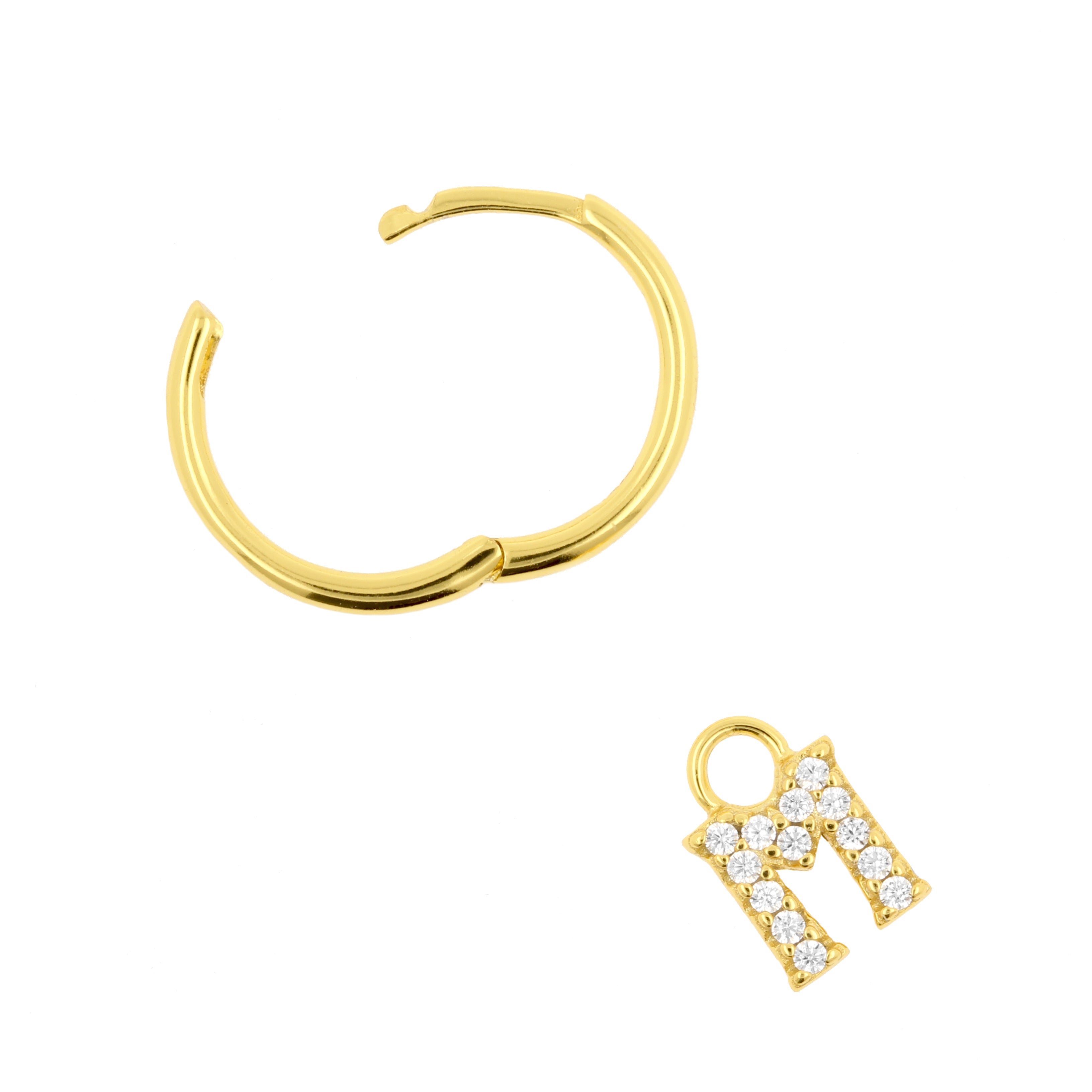 925 Silver Alphabet Letter Earring - M Gold