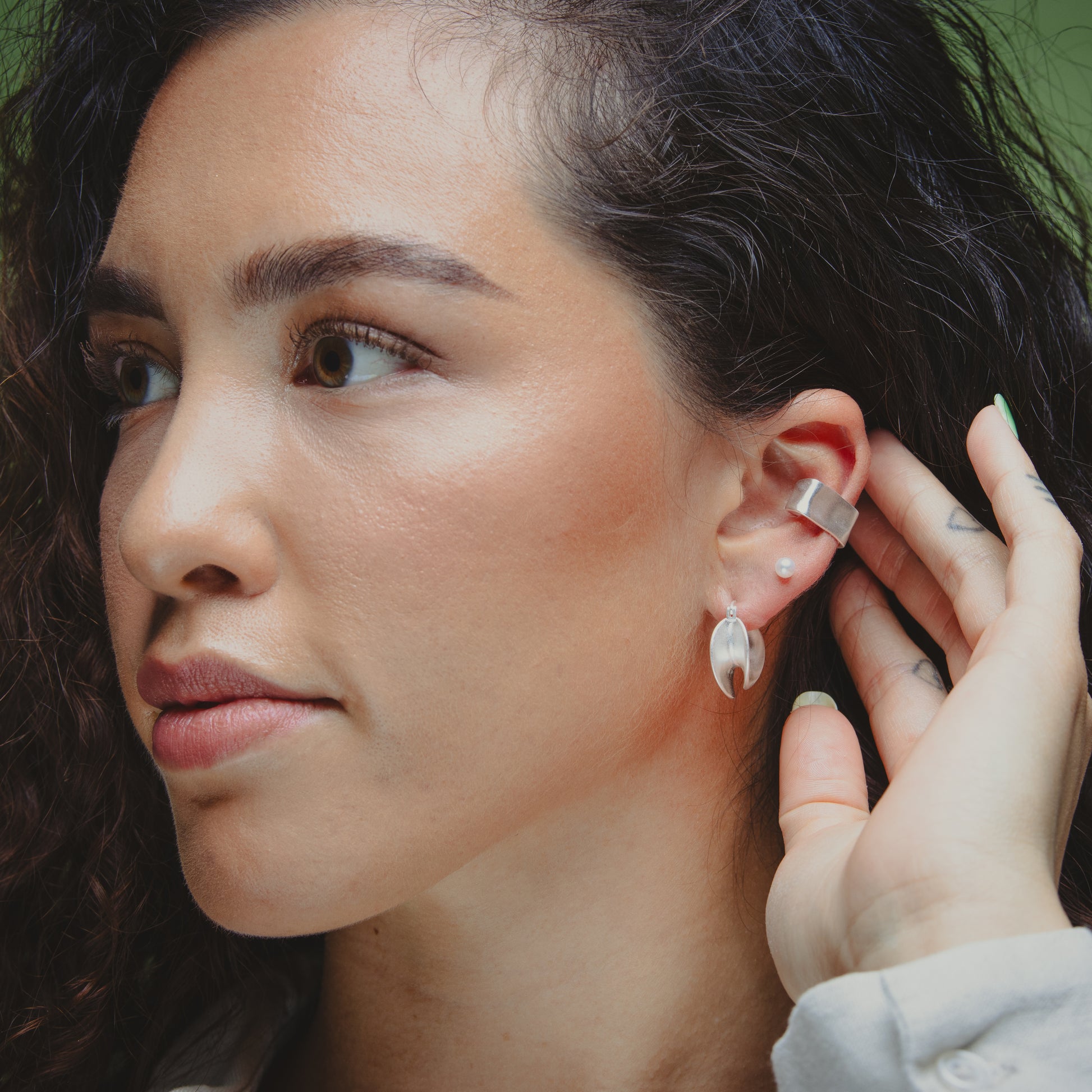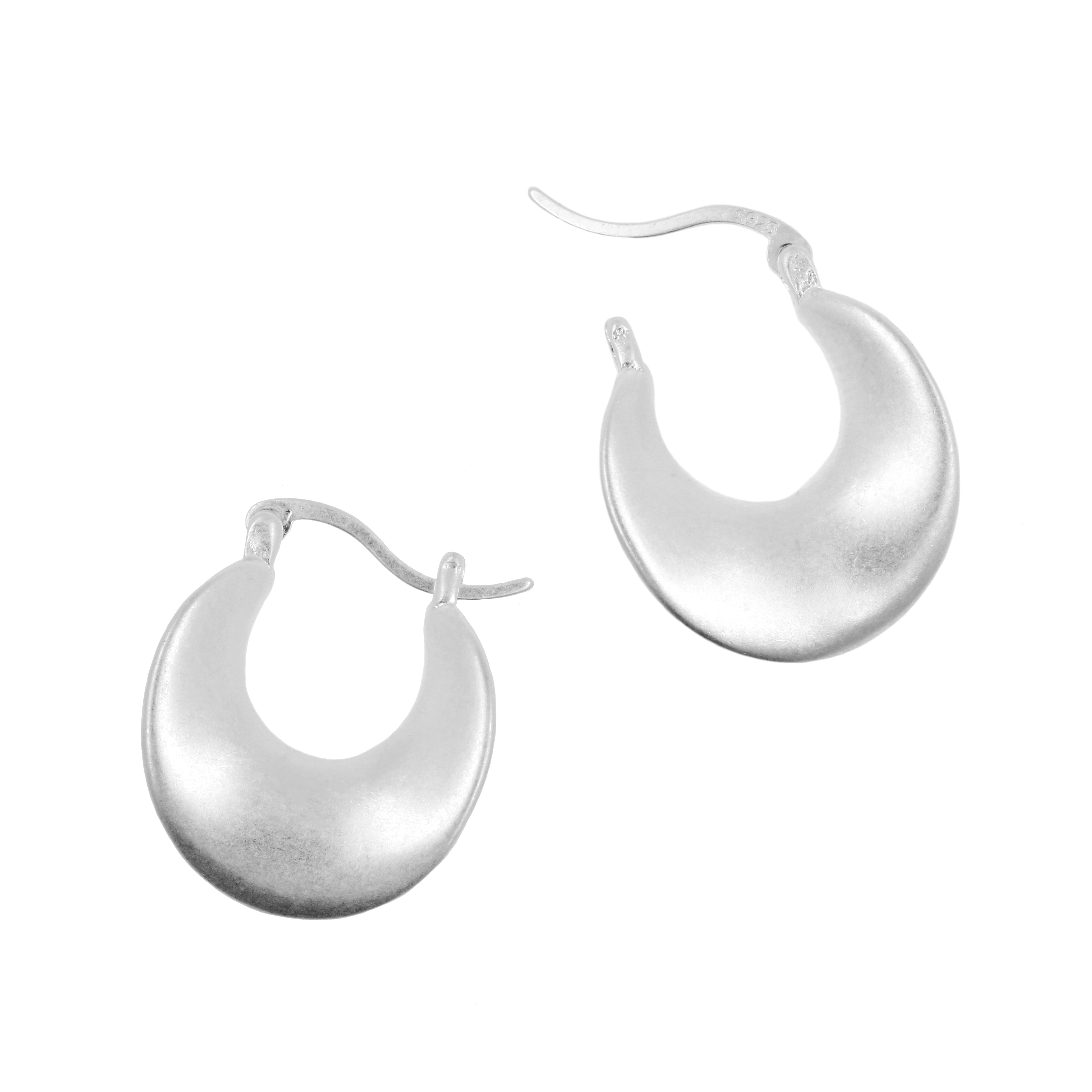 925 Silver Ear Hoops - Matte Crescent Silver