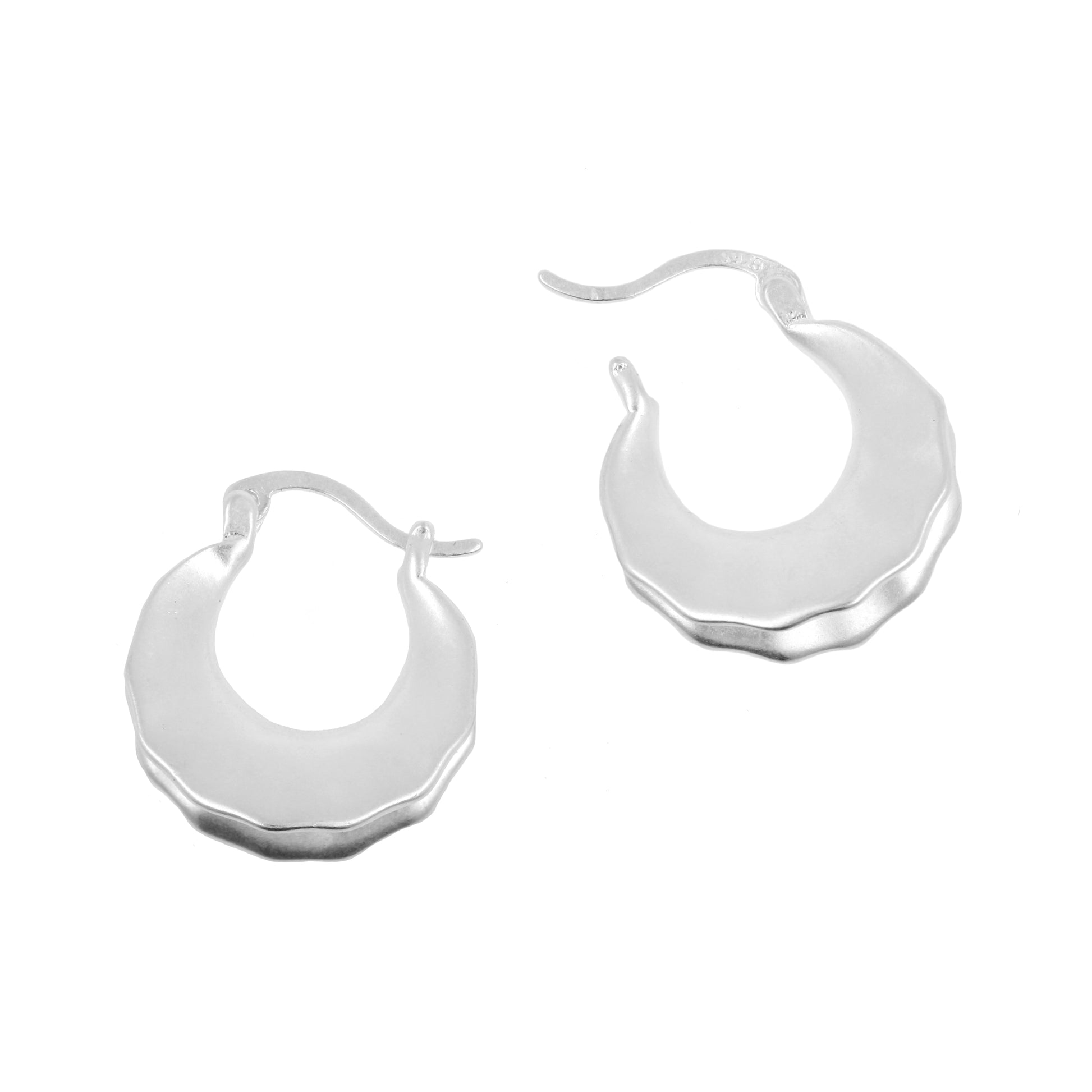 925 Silver Ear Hoops - Scallop Crescent Silver