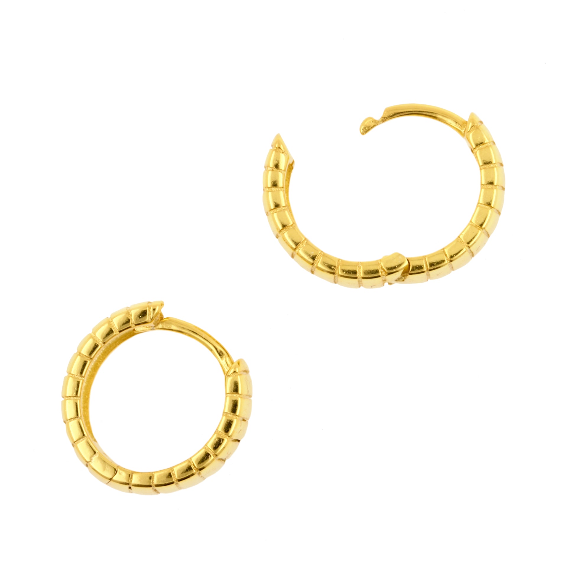 925 Silver Ear Hoops - Striped Bangle - Gold