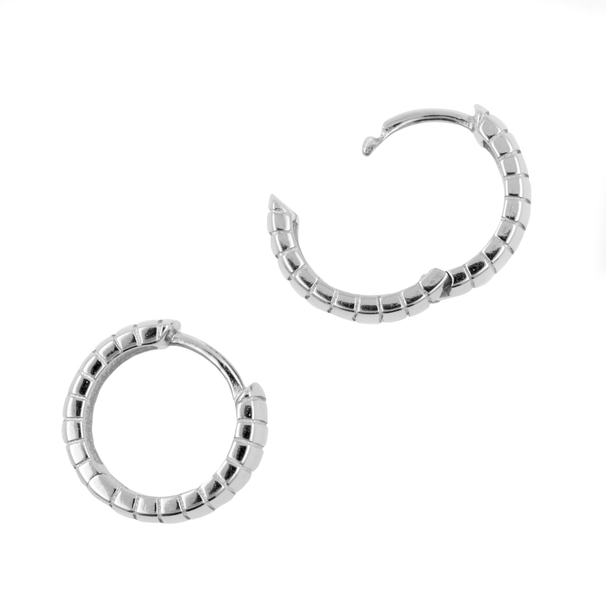 925 Silver Ear Hoops - Striped Bangle - Silver