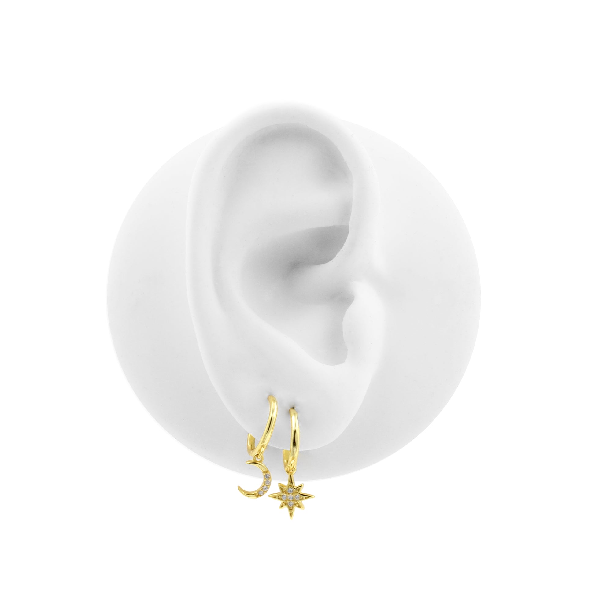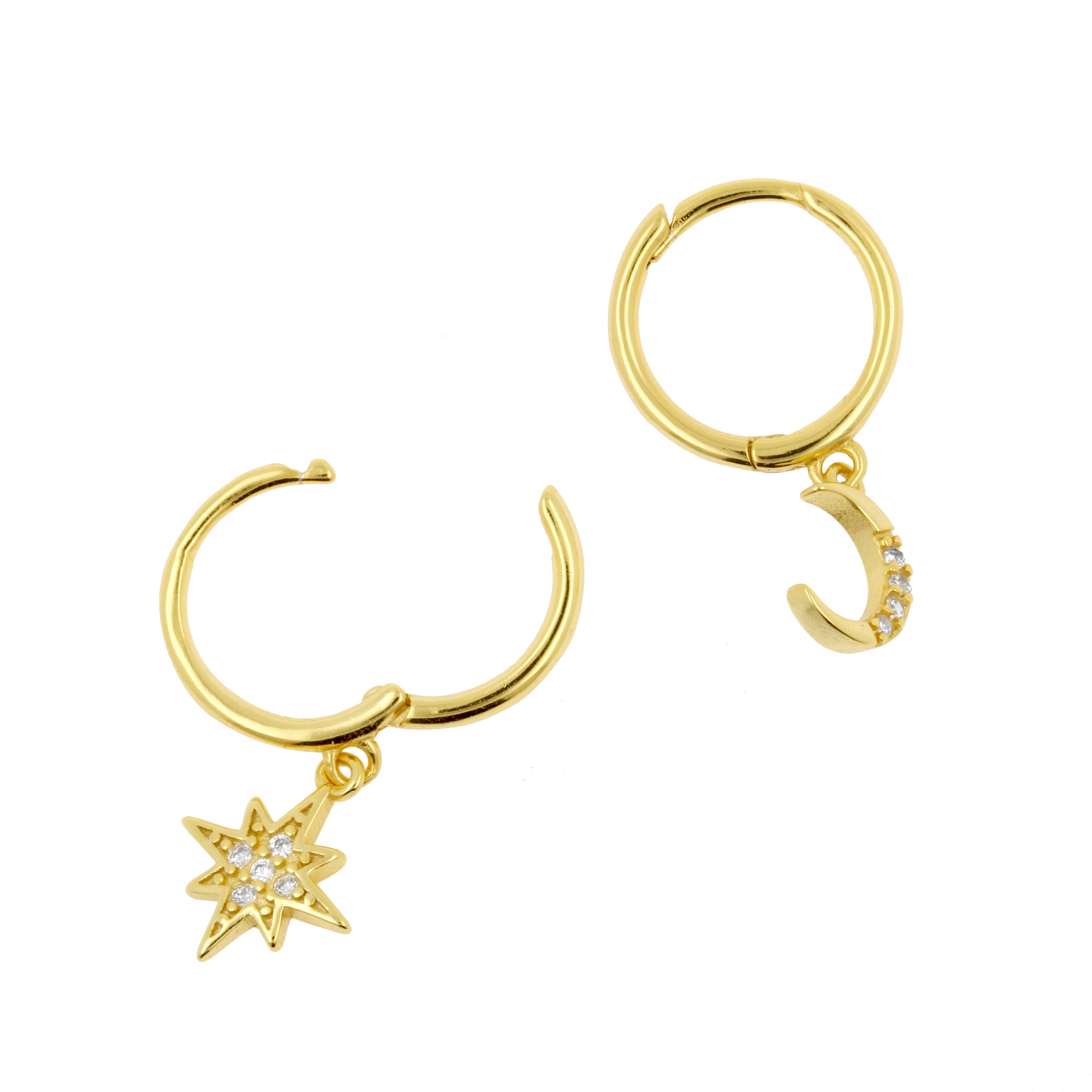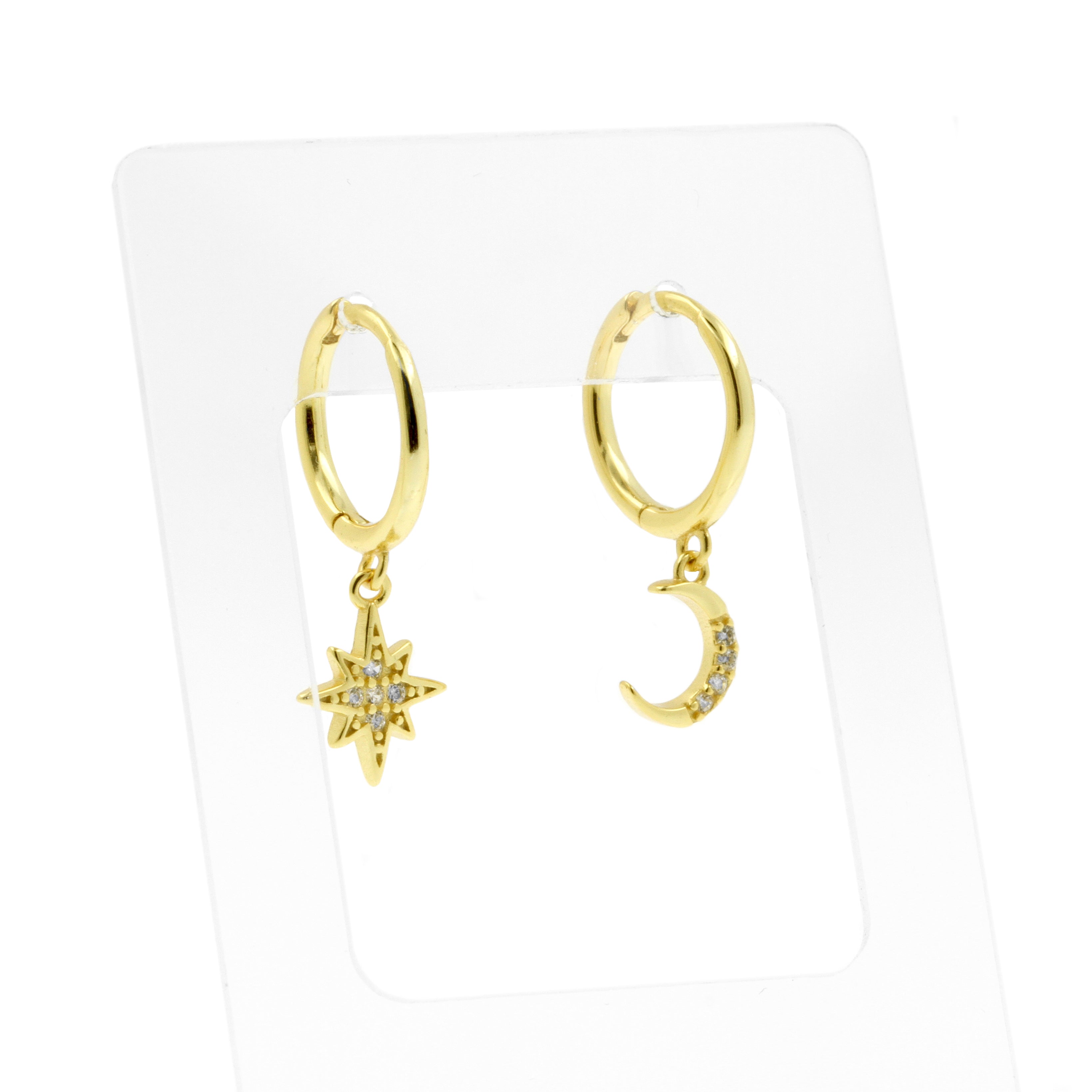 925 Silver Ear Hoops - Sun And Moon Gold