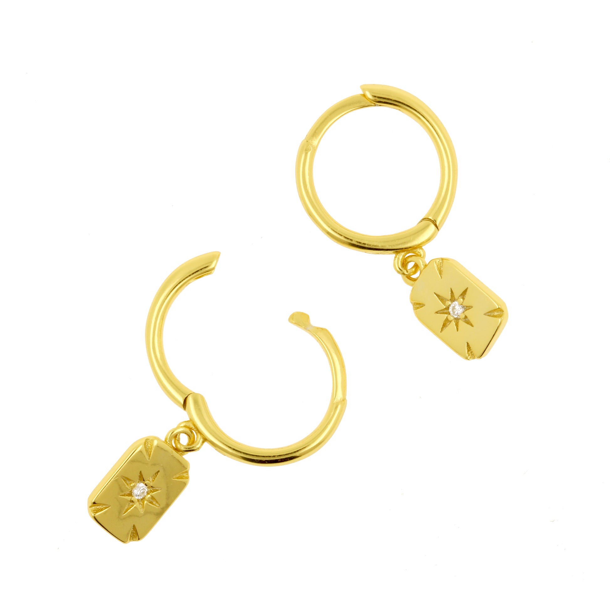 925 Silver Ear Hoops - Zirkonia Square Gold