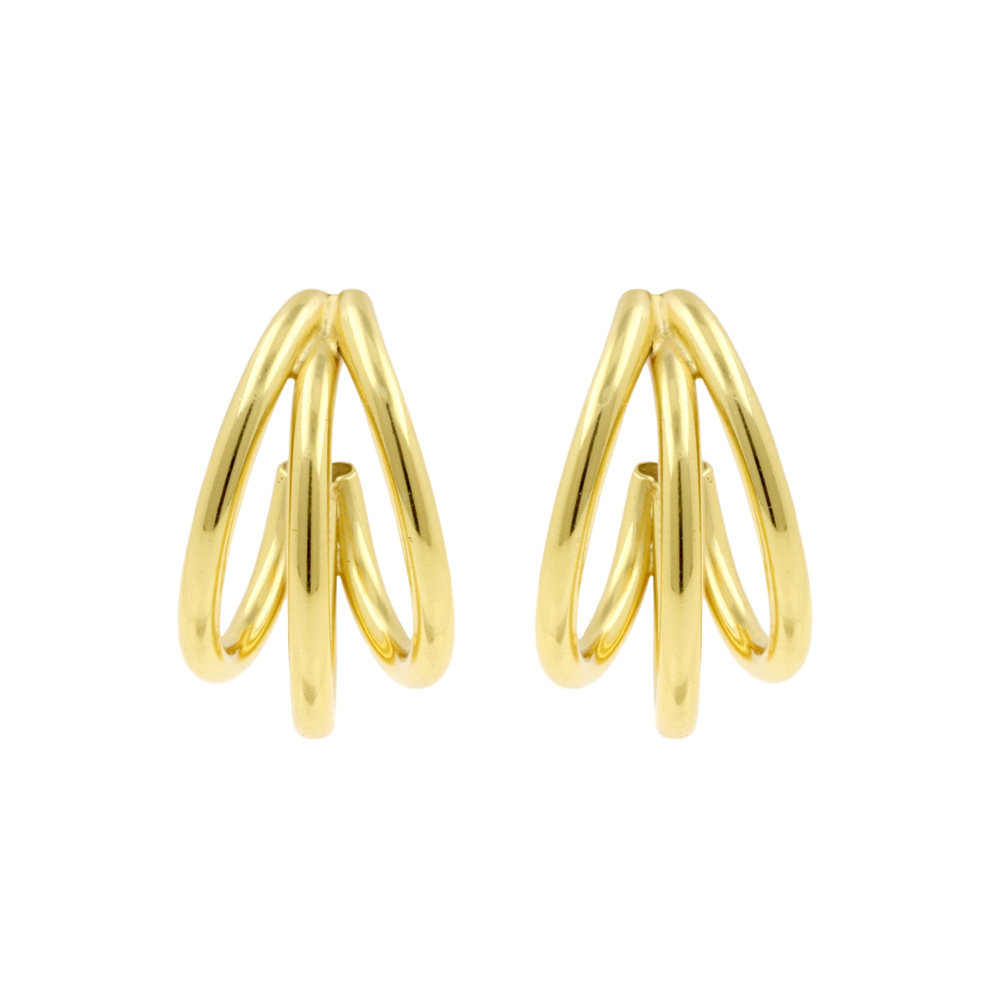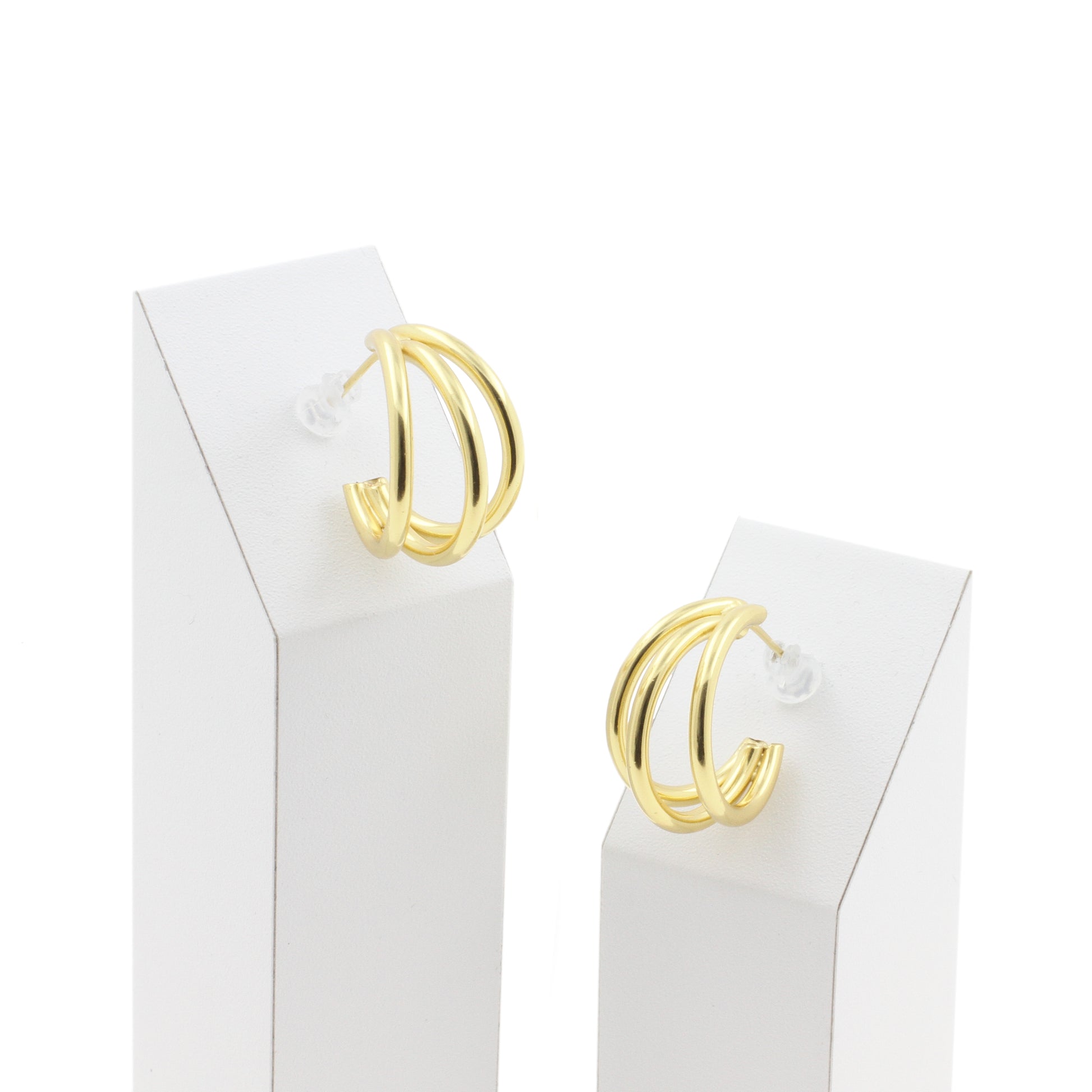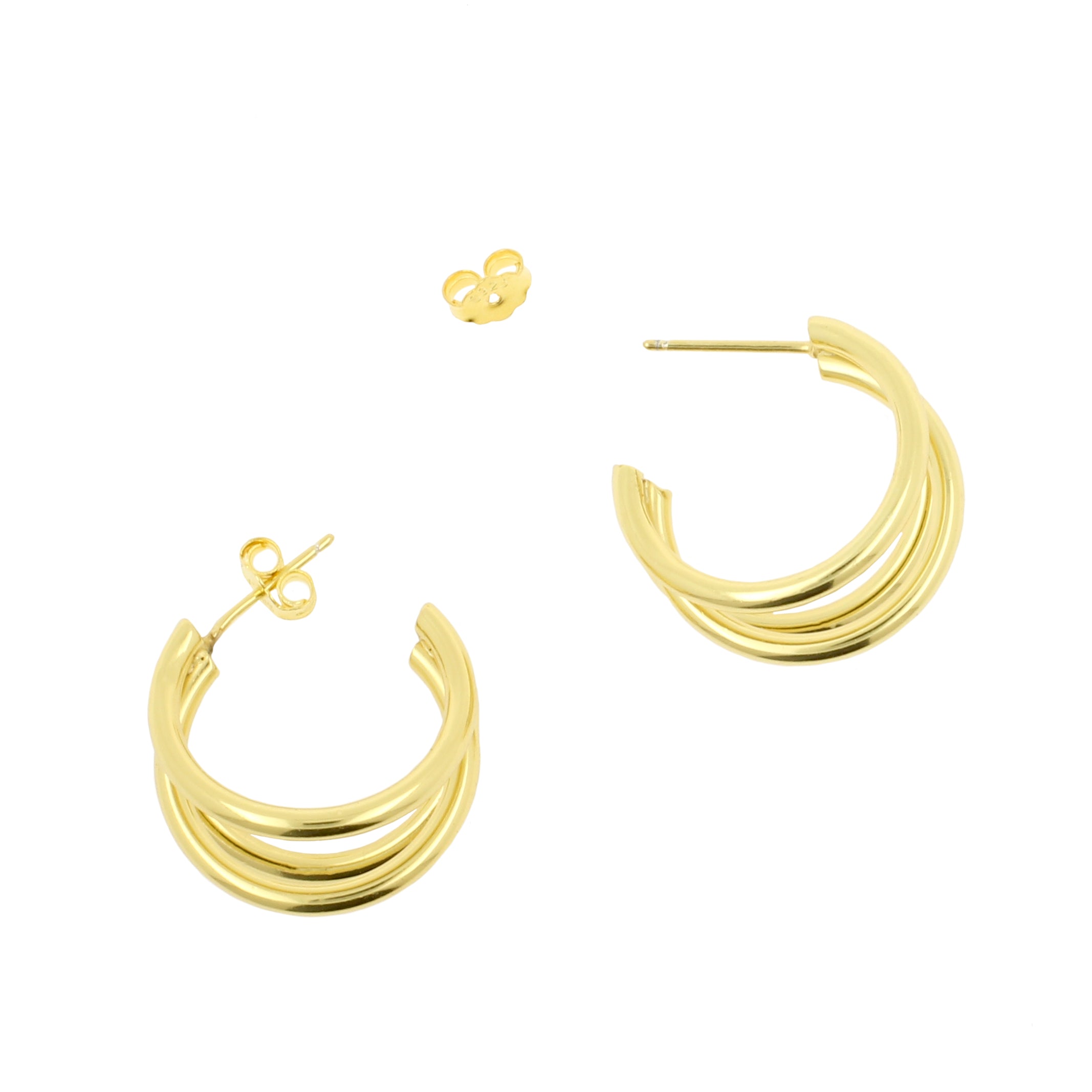 925 Silver Ear Studs - Hoops Triple - Gold