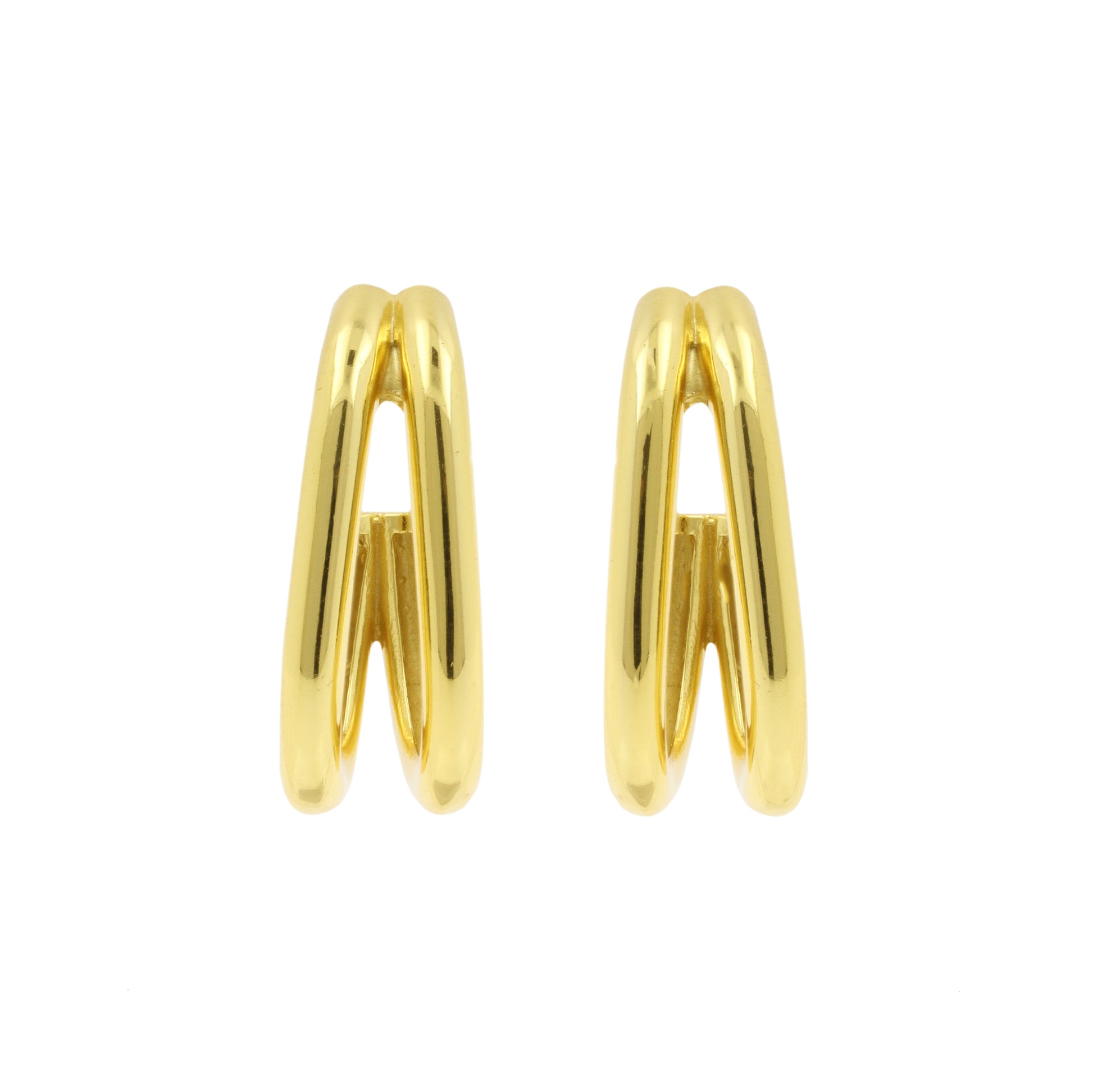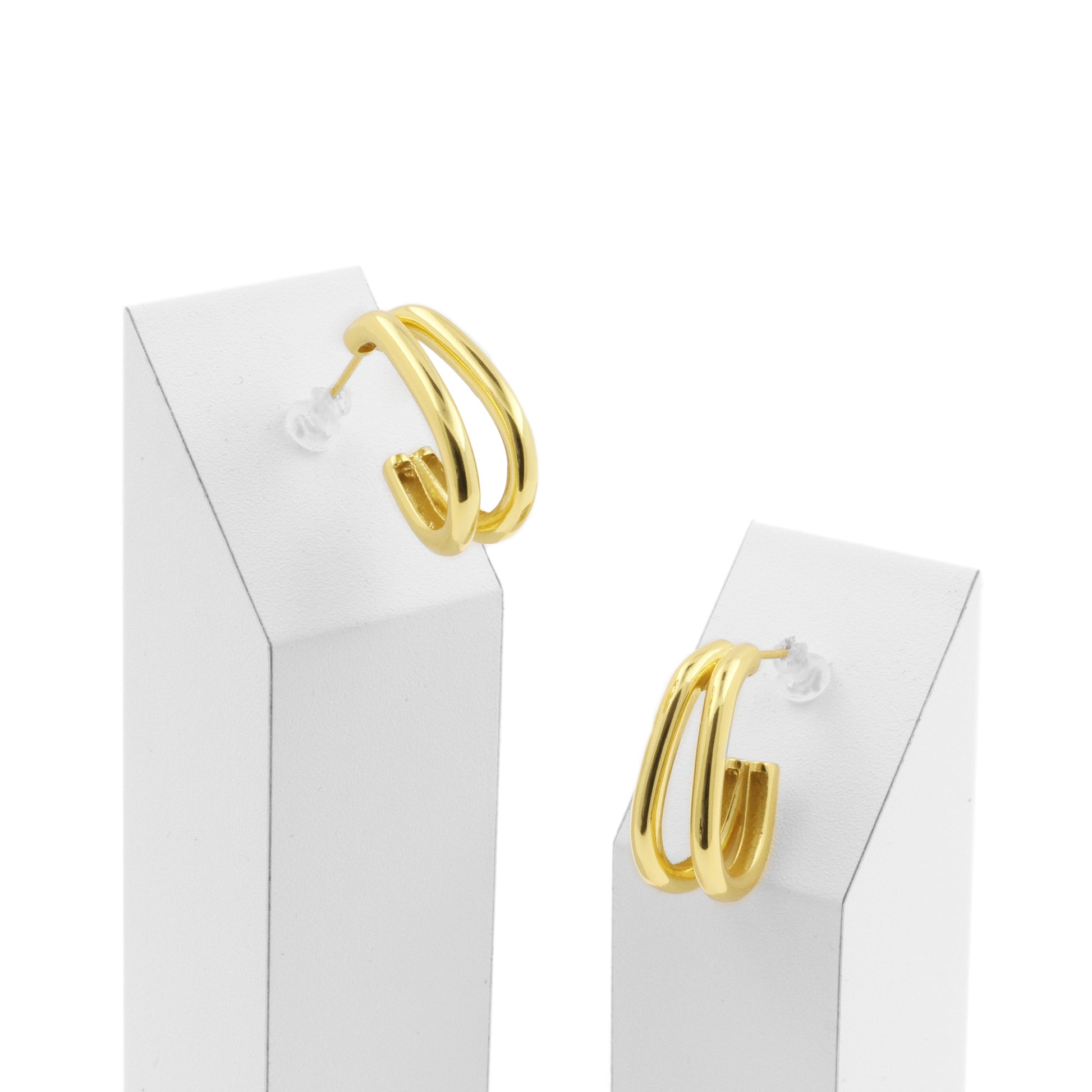 925 Silver Earrings - Hoops Double - Gold