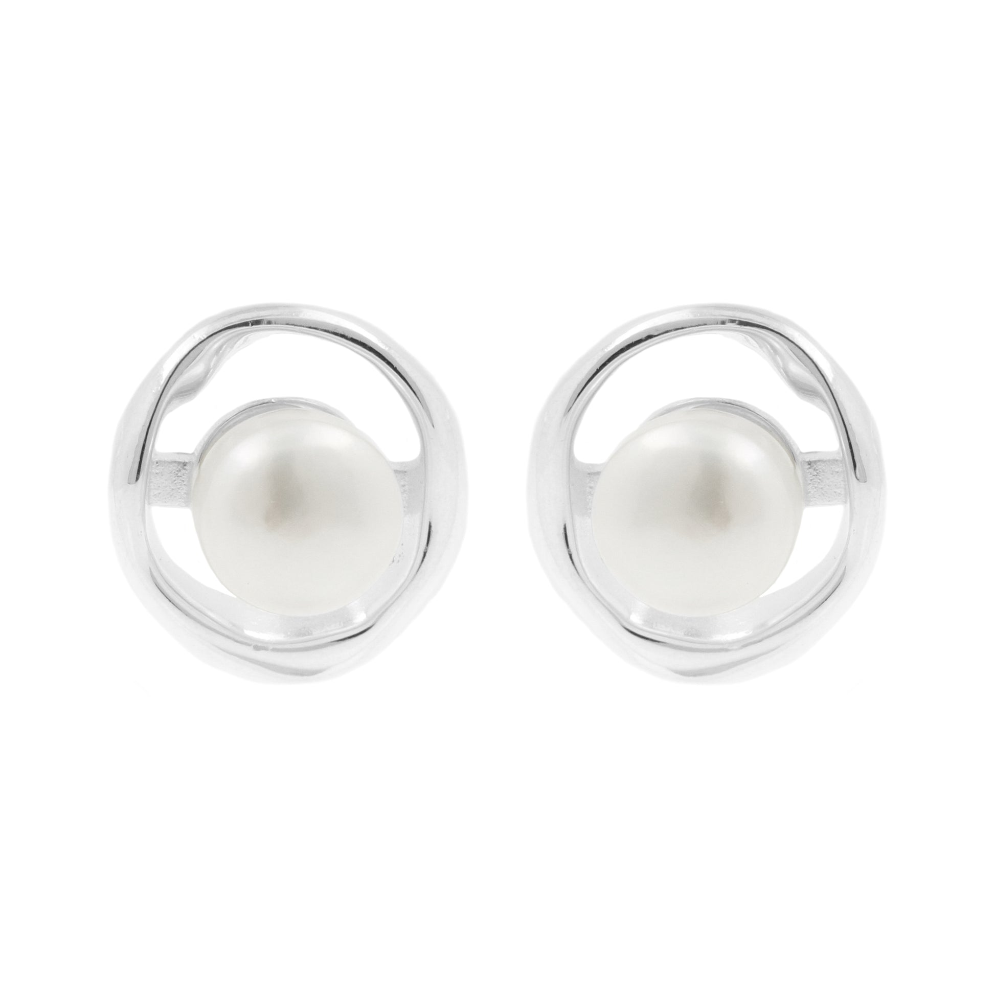 925 Silver Earstuds - Captured Pearl Silver