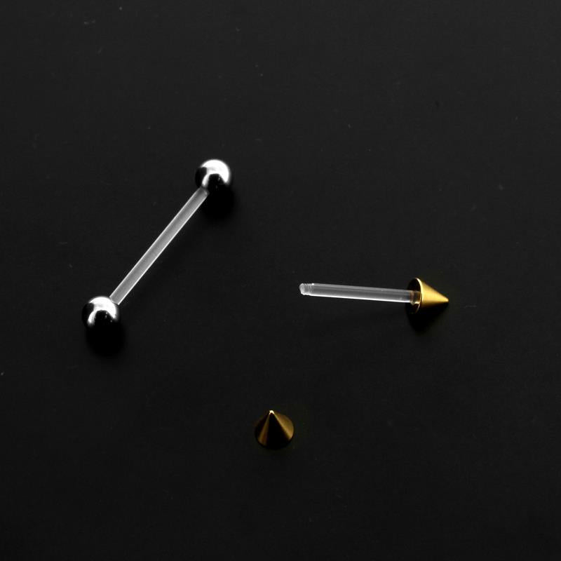 Bioplast is a light and flexible polymeric material specifically developed for piercings. The ends of this barbell post are slightly threaded, but make sure you pre-tap the thread before you start wearing your jewelry. Simply screw and unscrew with a metal threaded ball of a Bioplast threading tool. Need to shorten the length of your jewelry? No problem! Simply cut the post to your desired length, add some thread to the ends and you're good to go. Please note that you will receive the seperate post only upon ordering, without threaded balls or other accessories.