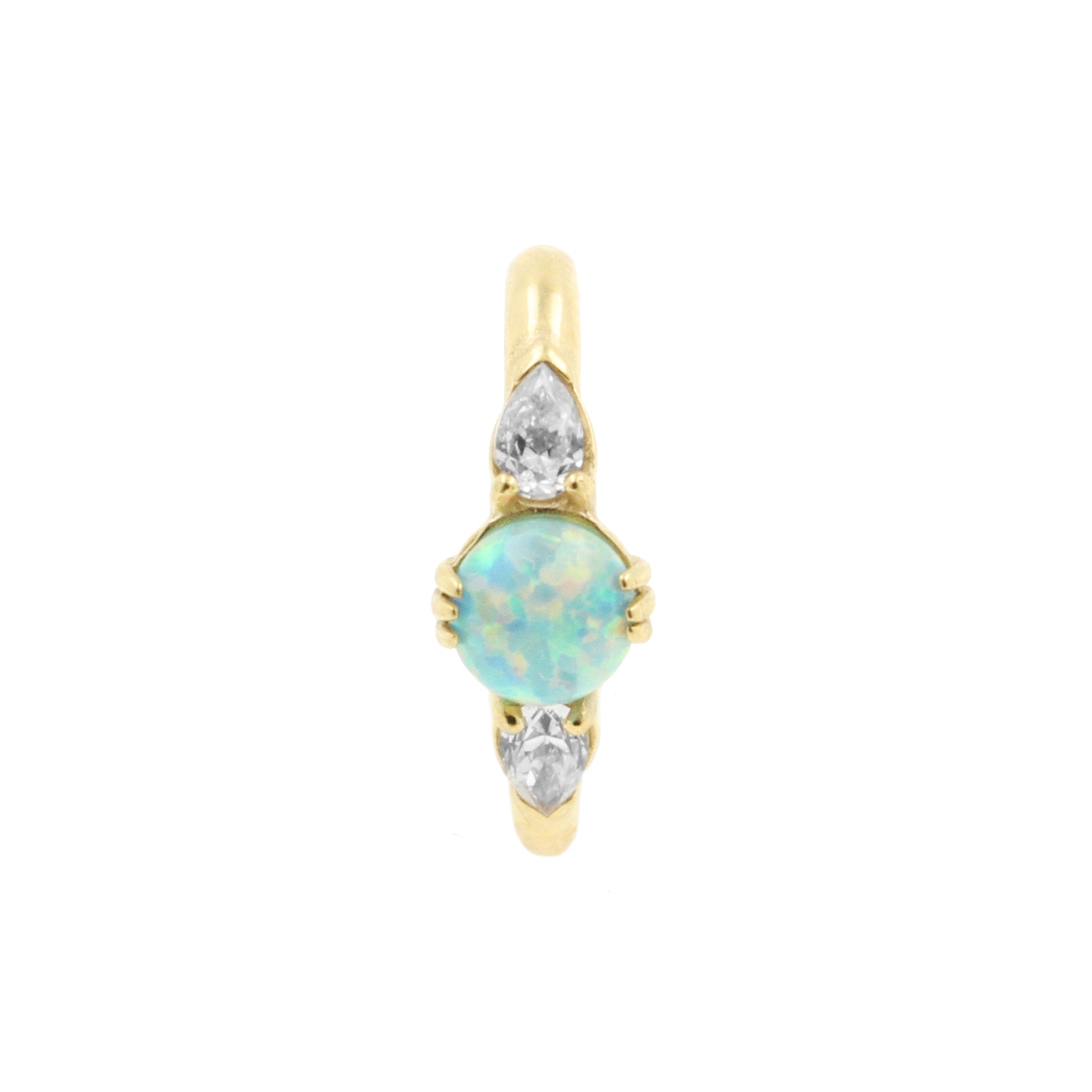 Nickel-Free Stainless Steel Belly Ring Clicker - Opal And Zirconia Light Green Opal