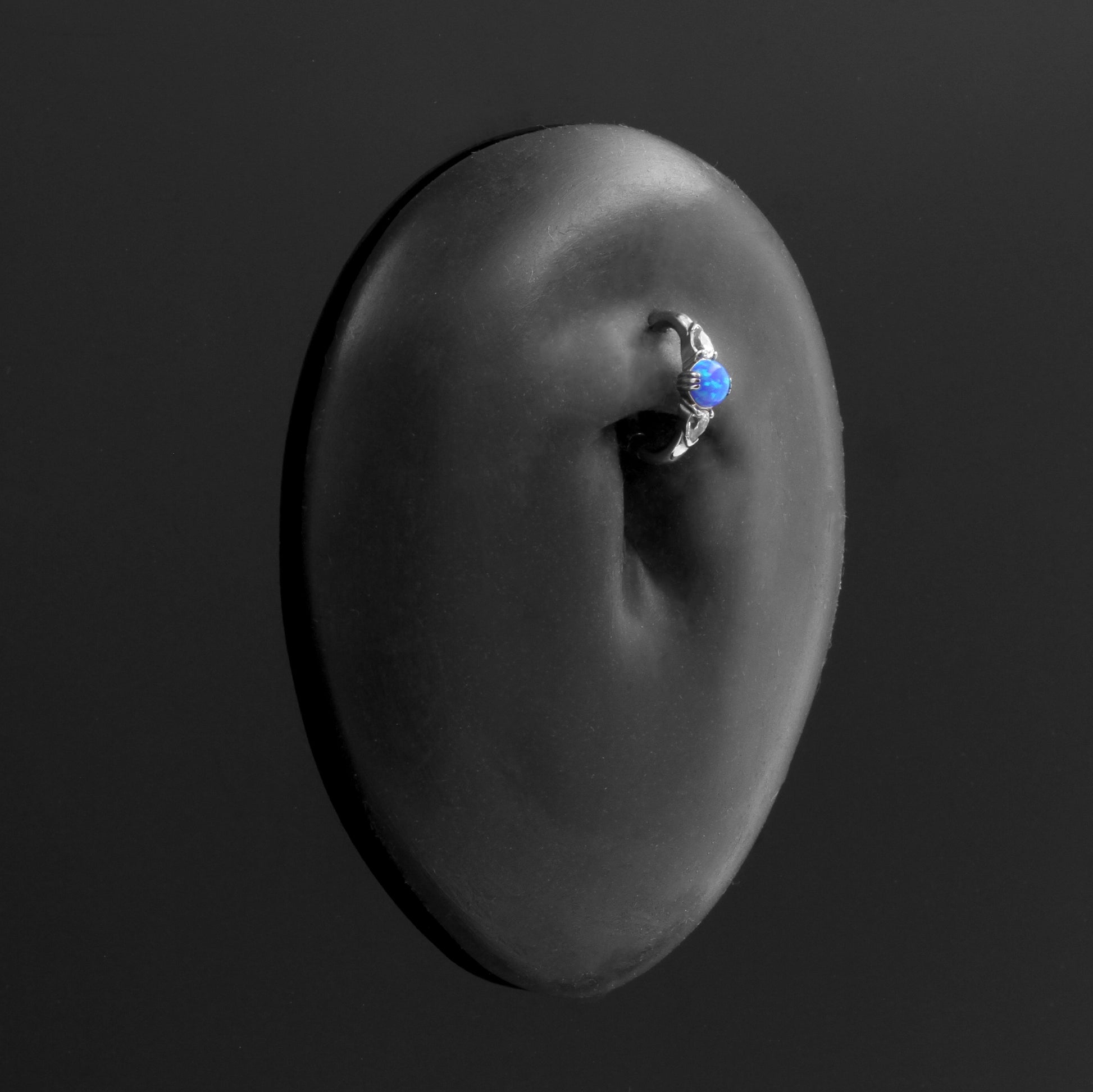 Nickel-Free Stainless Steel Belly Ring Clicker - Opal And Zirconia Sapphire Blue Opal