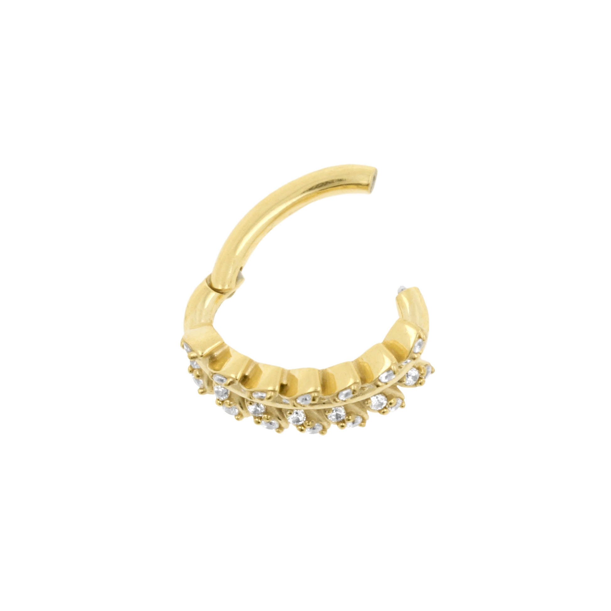 Nickel-Free Stainless Steel Belly Ring Clicker - Zirconia Vine - Gold