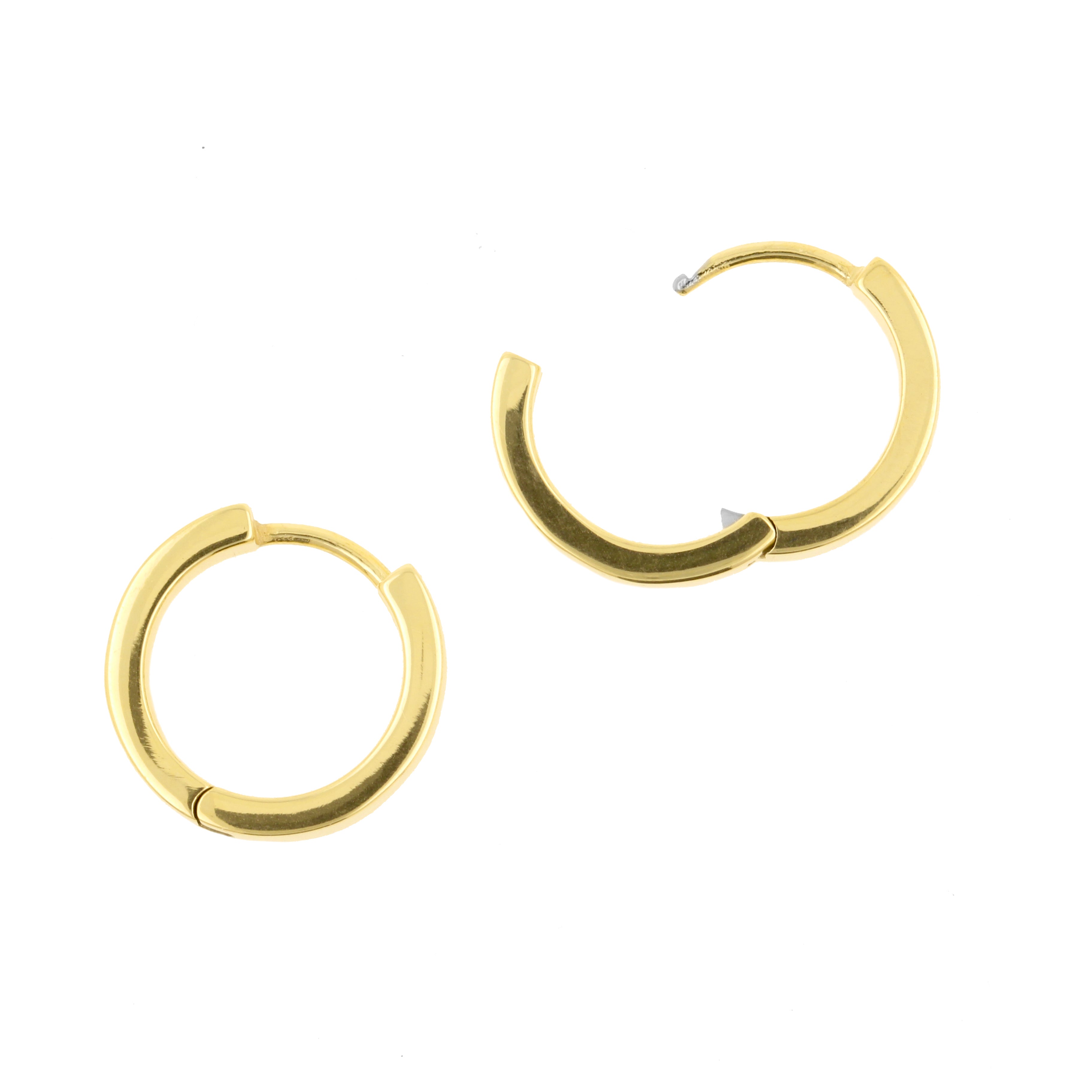 Nickel-Free Stainless Steel Click Hoop Earrings - Flat- 4 mm width Gold