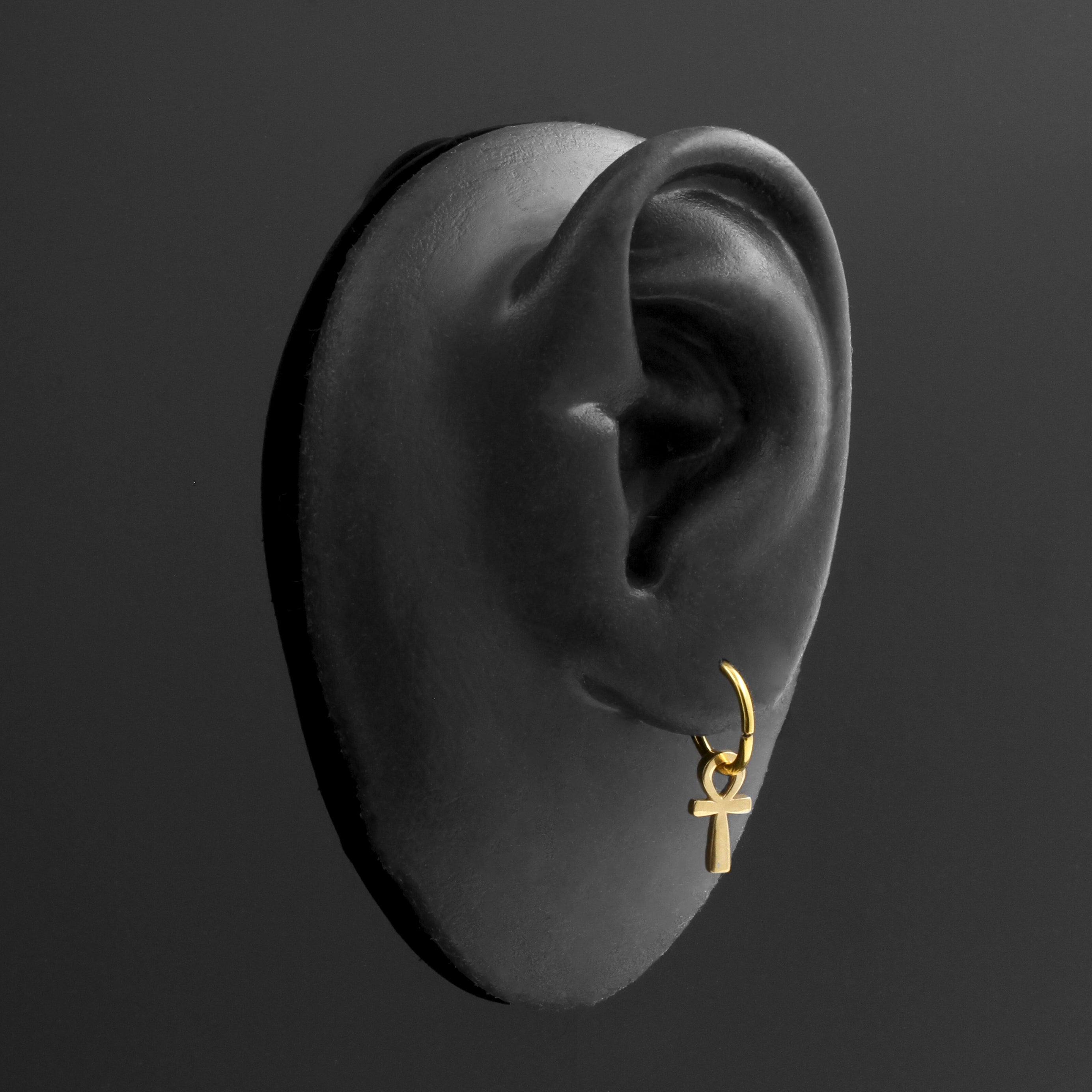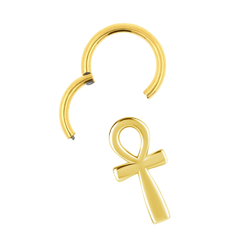 Nickel-Free Stainless Steel Click Ring Charm - Ankh Gold