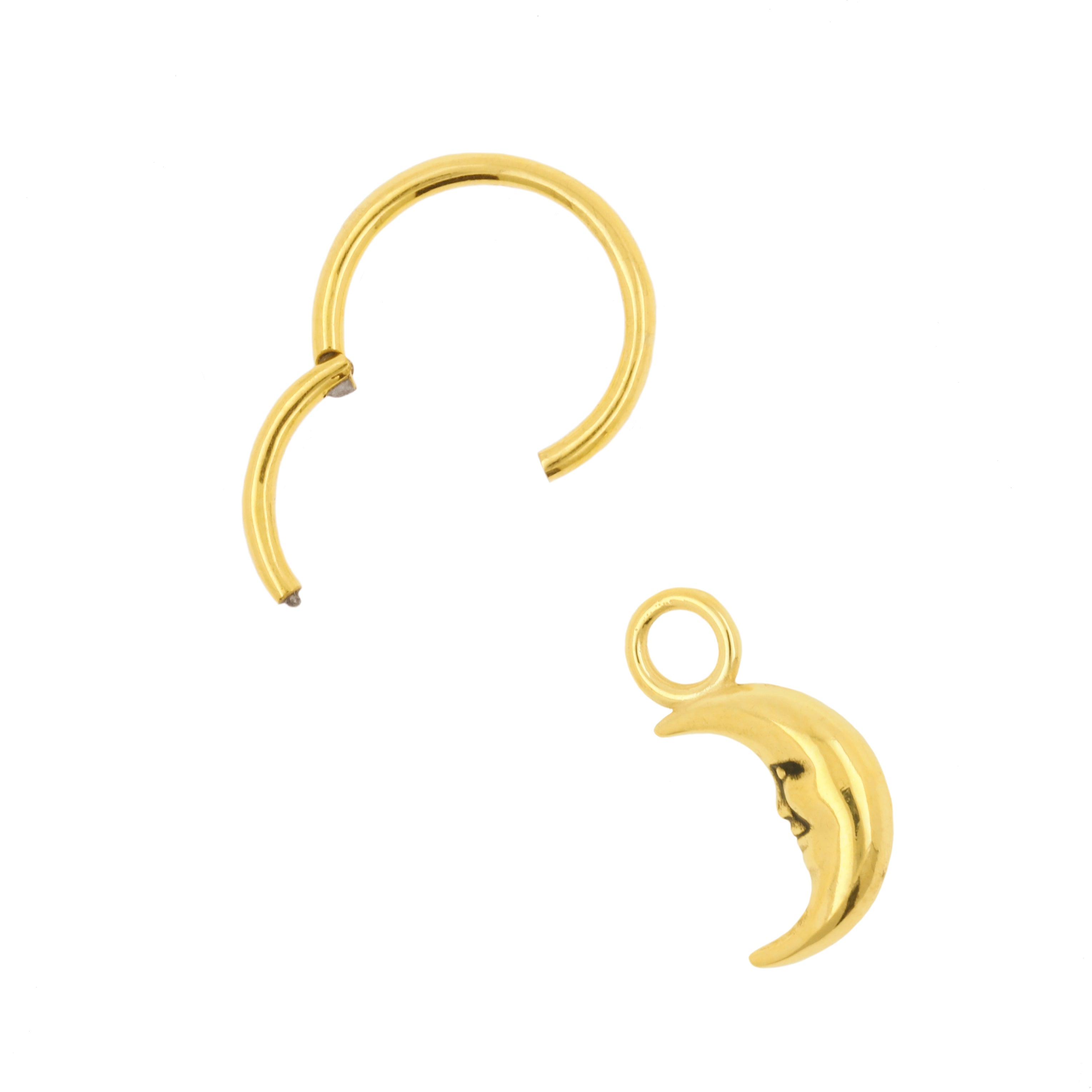 Nickel-Free Stainless Steel Click Ring Charm - Moon - Gold