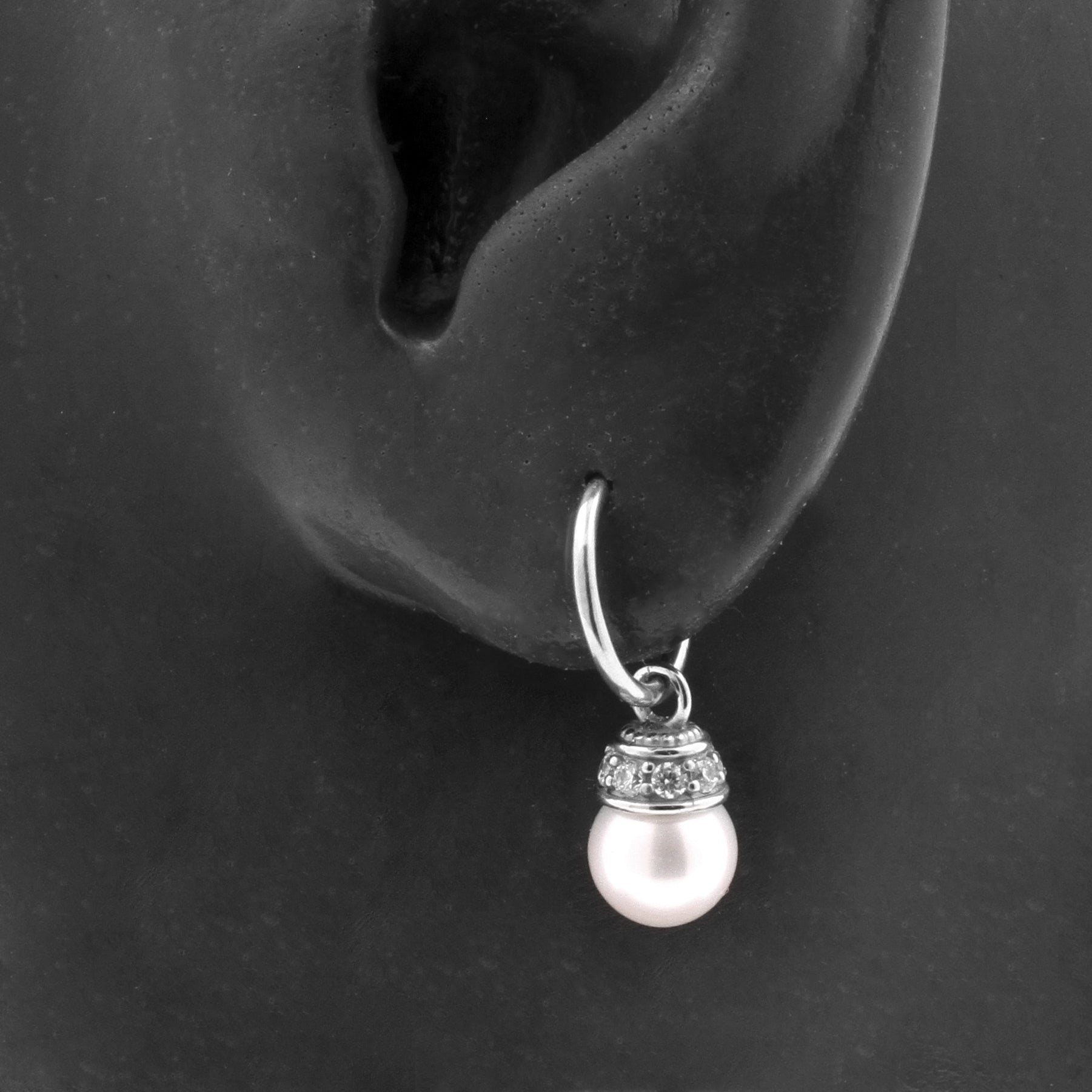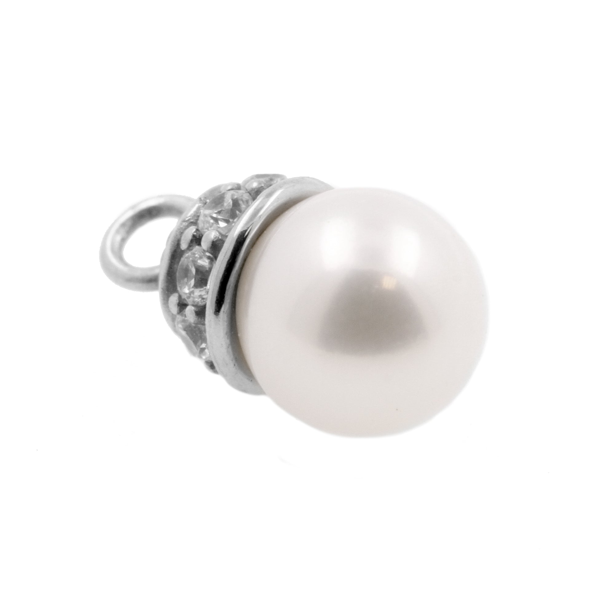 Nickel-Free Stainless Steel Click Ring Charm - Pearl Silver