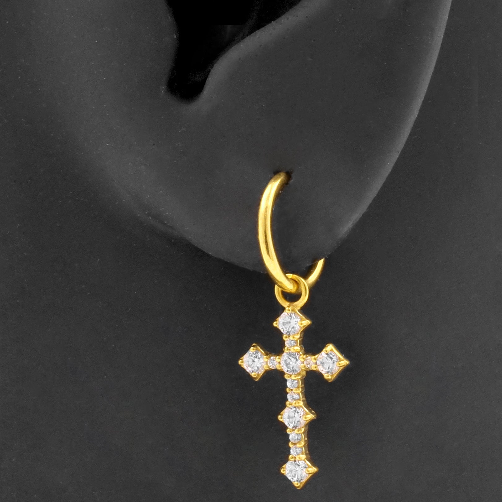 Nickel-Free Stainless Steel Click Ring Charm - Zirconia Cross Gold