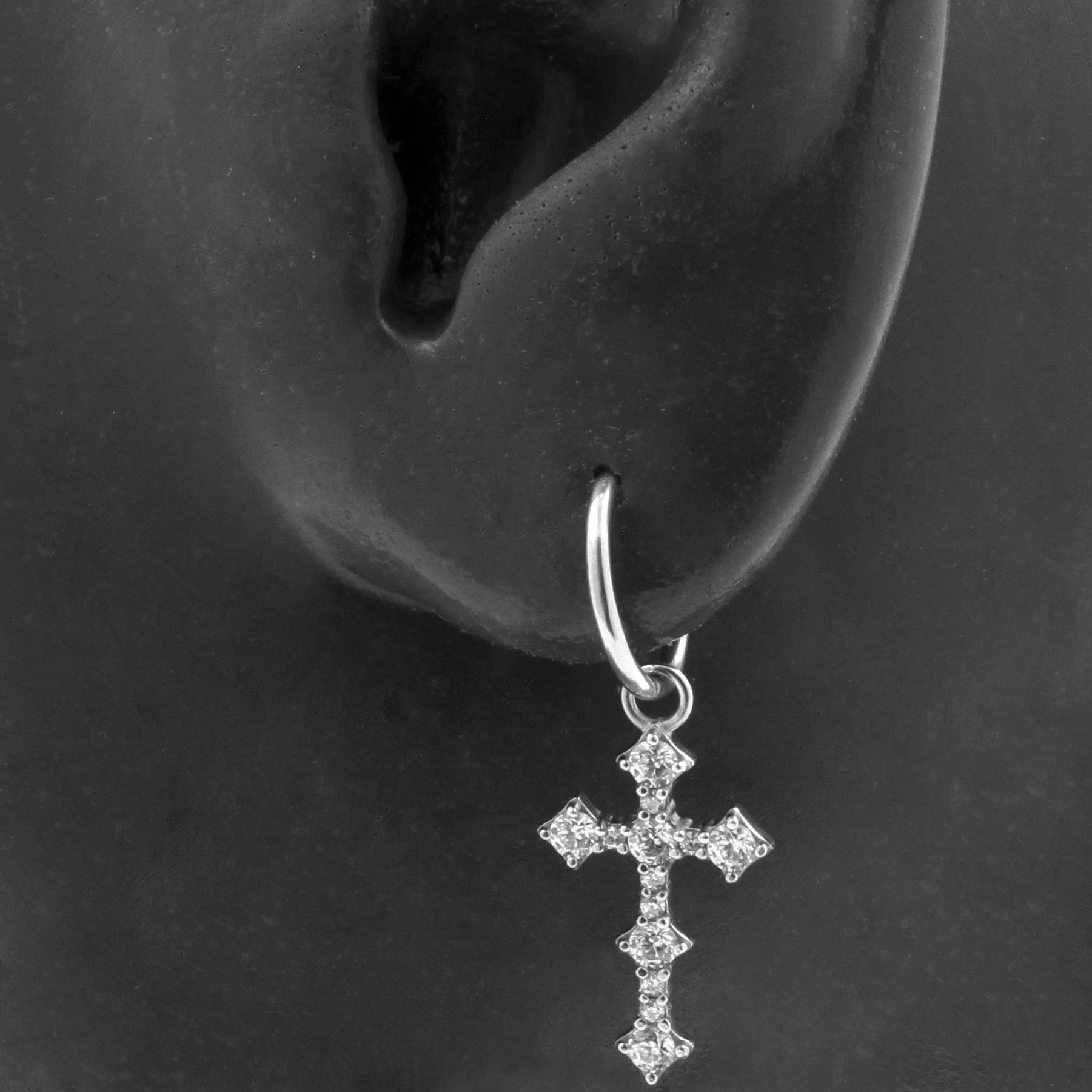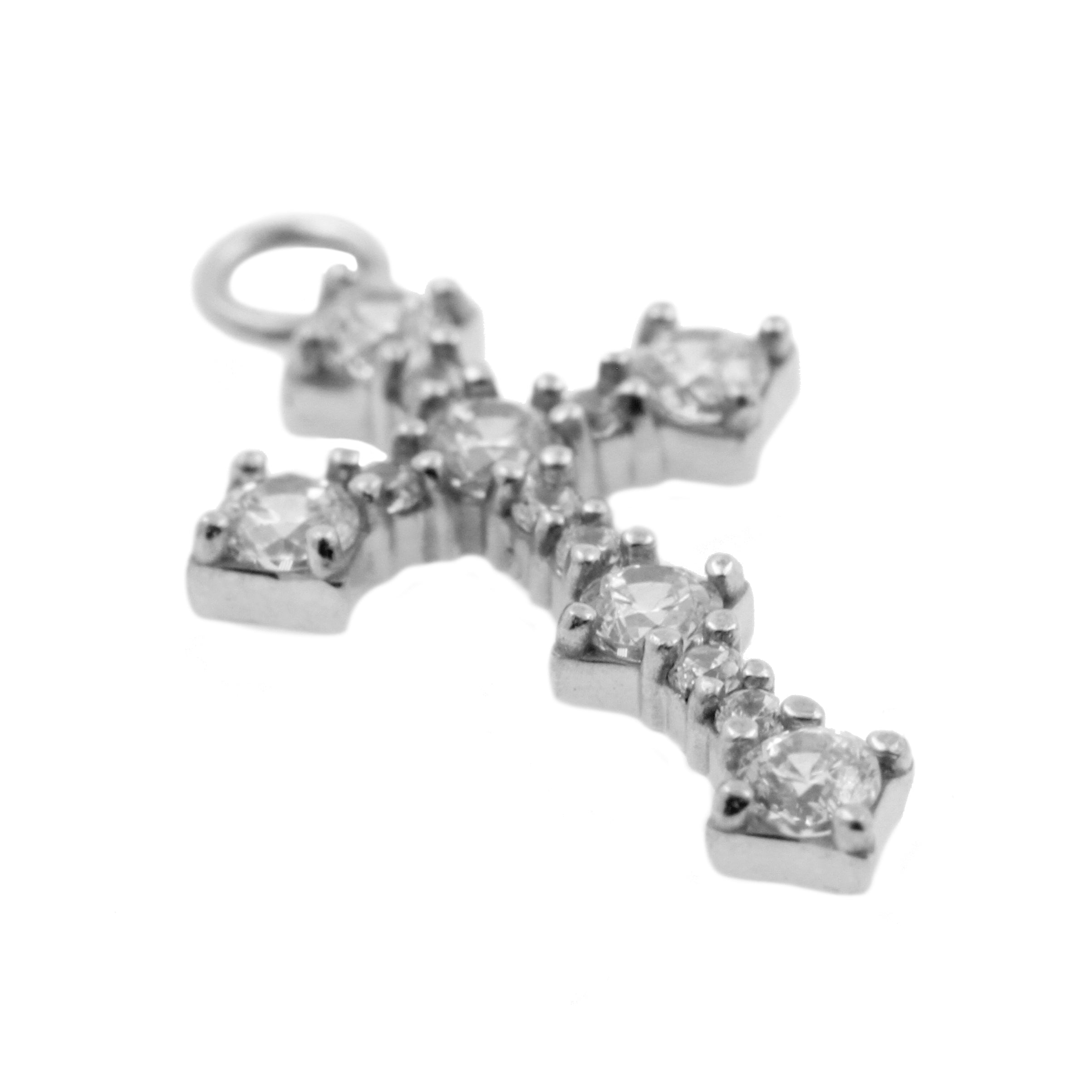 Nickel-Free Stainless Steel Click Ring Charm - Zirconia Cross Silver