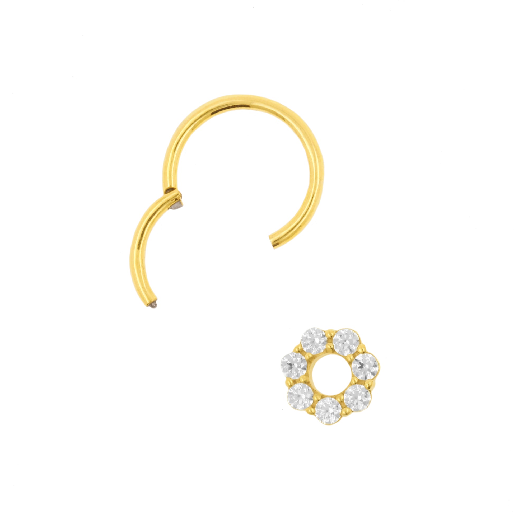 Nickel-Free Stainless Steel Click Ring Charm - Zirconia Donut - Gold