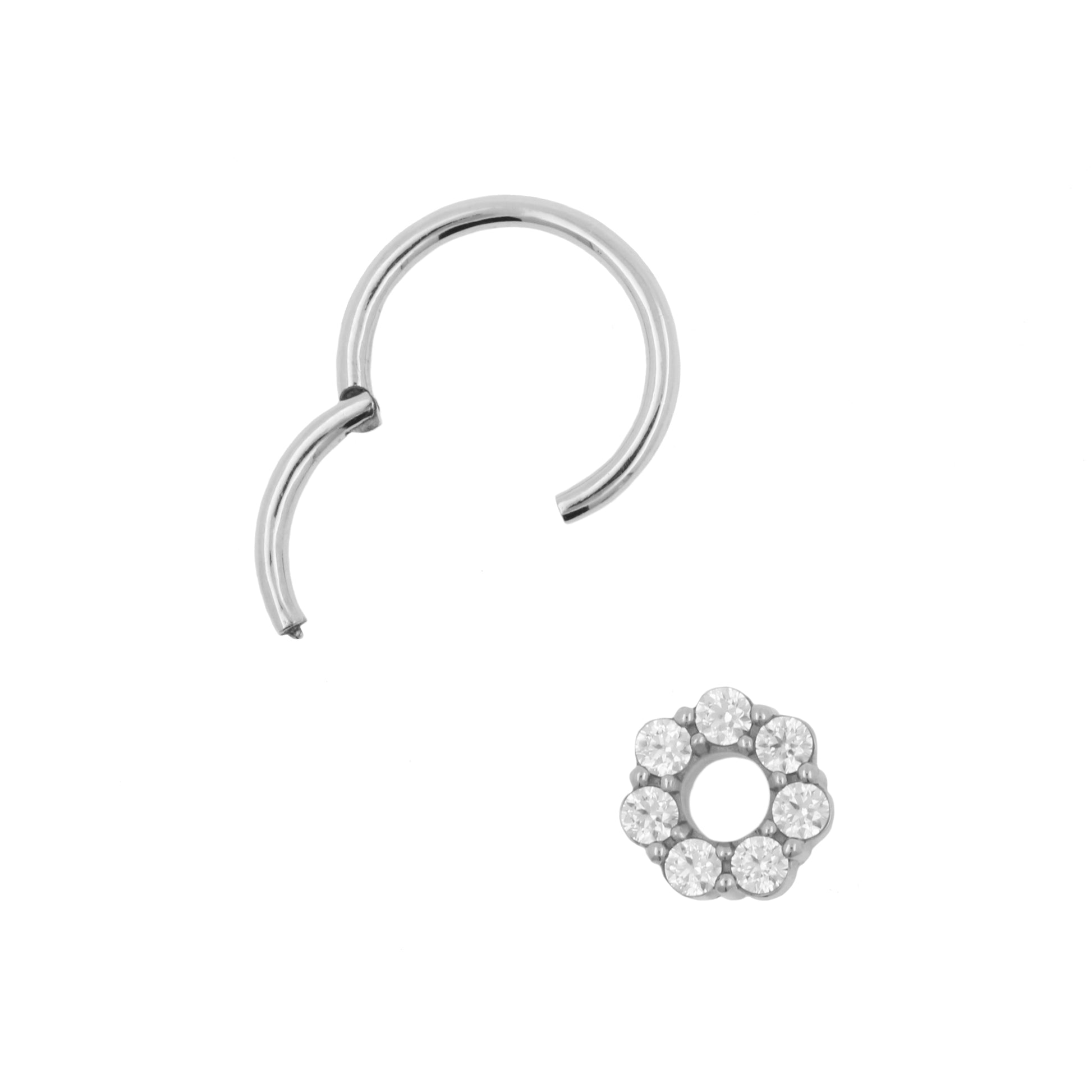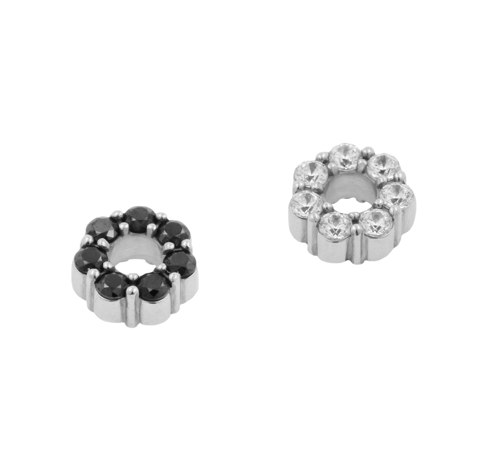 Nickel-Free Stainless Steel Click Ring Charm - Zirconia Donut - Silver